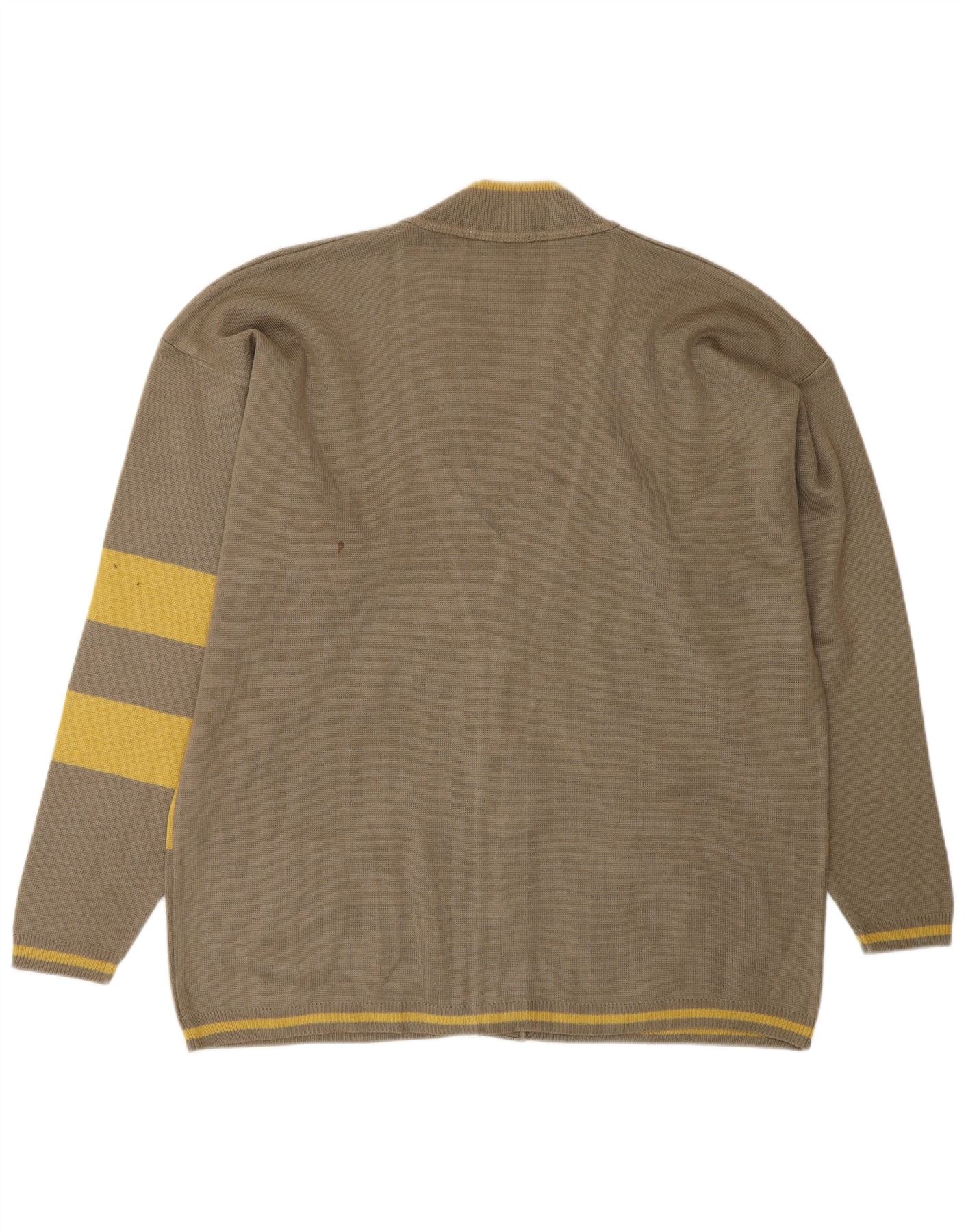 VINTAGE Mens Loose Fit Cardigan Sweater Large Green Striped Polyamide