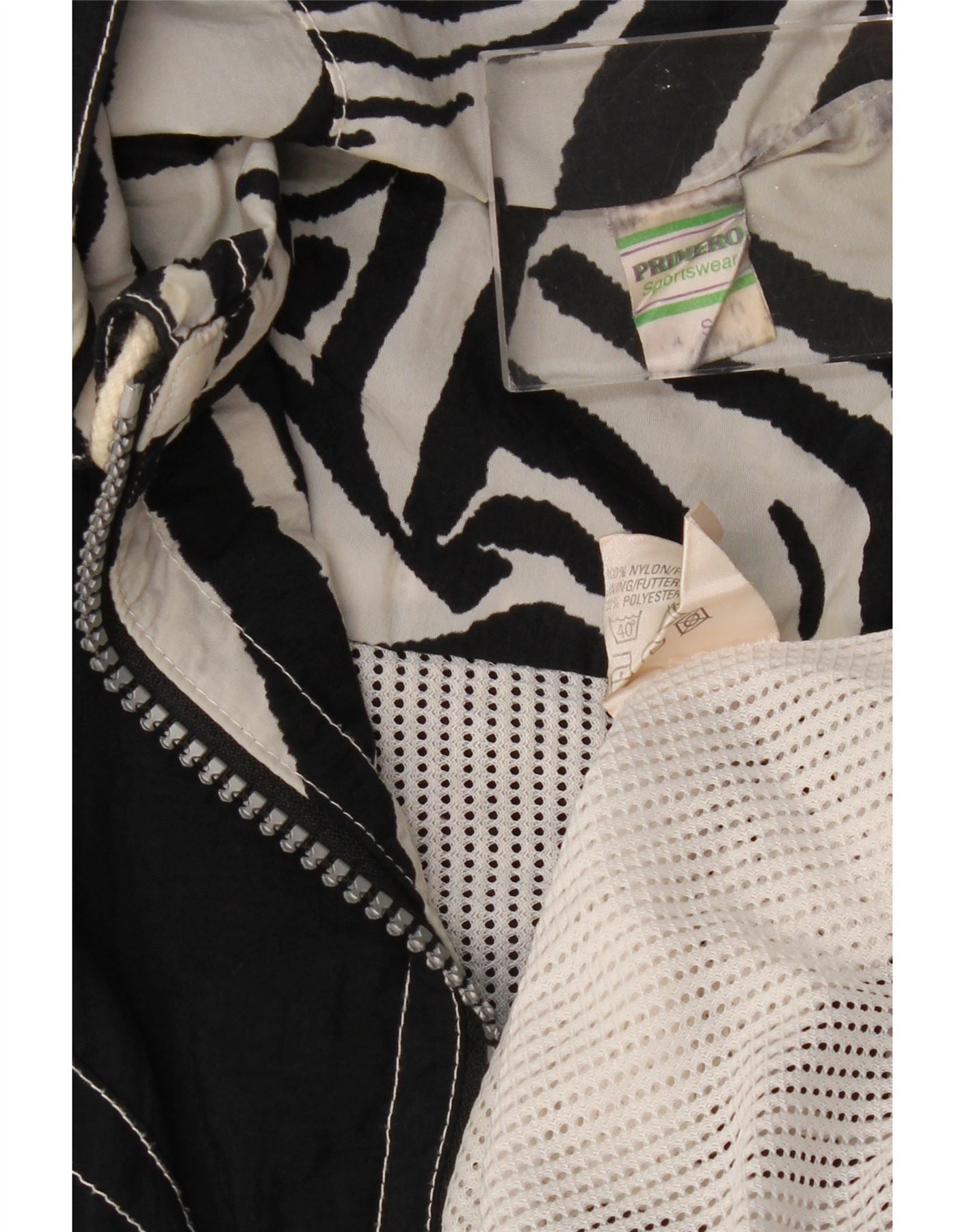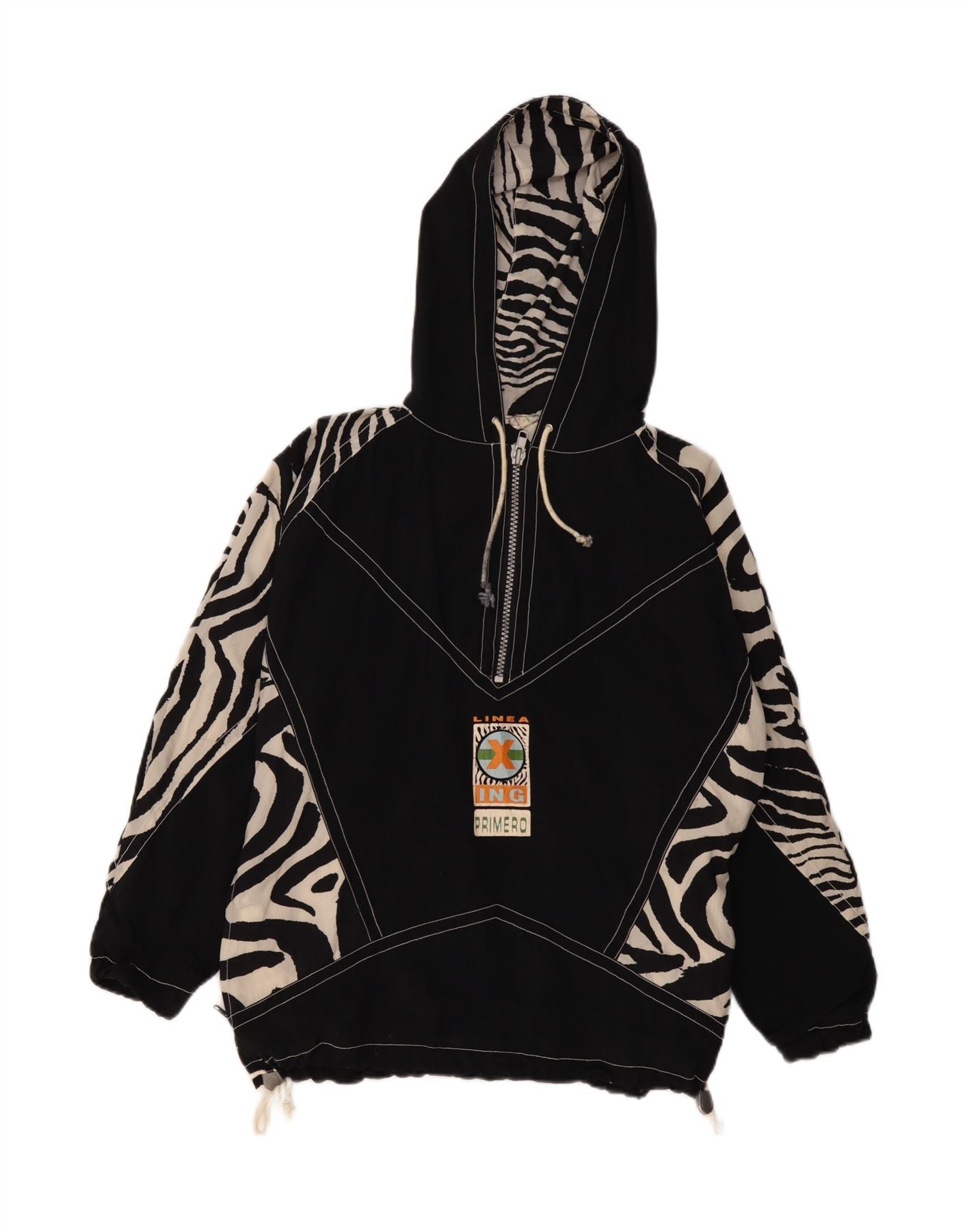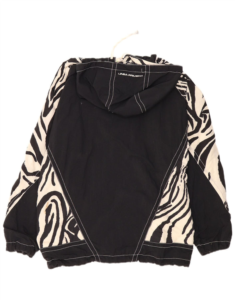 VINTAGE Mens Loose Fit Hooded Anorak Jacket UK 36 Small Black Animal Print