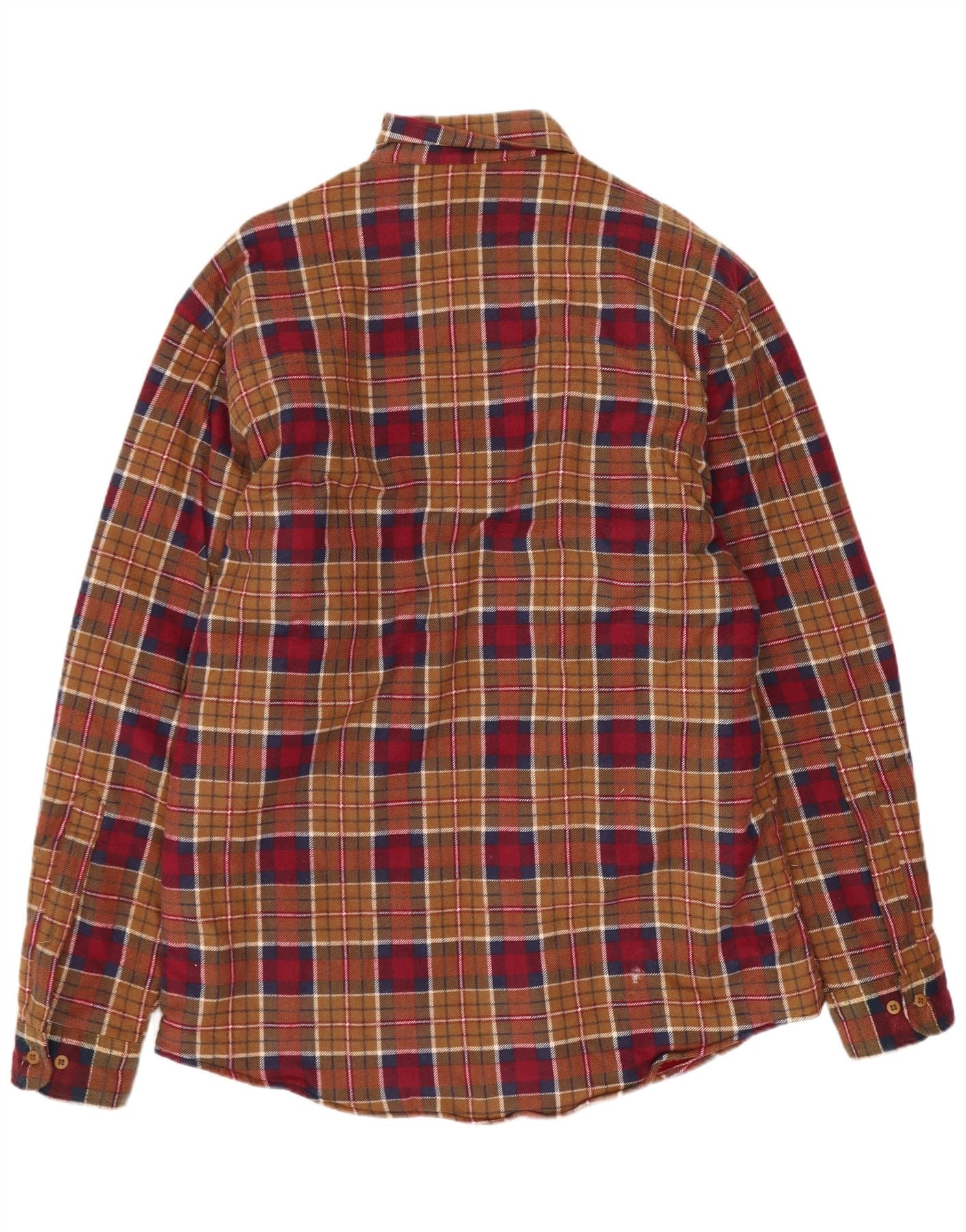 - AI Description: This Dingos mens flannel shirt is crafted from soft cotton flannel, offering warmth and comfort. It features a full cotton lining for added cosiness. The multicoloured plaid pattern combines rich red, brown, and blue tones. A classic collared neckline and button-up front define its timeless appeal. Long sleeves finish with buttoned cuffs. Two chest pockets add practical detail. The regular fit ensures comfortable wear.