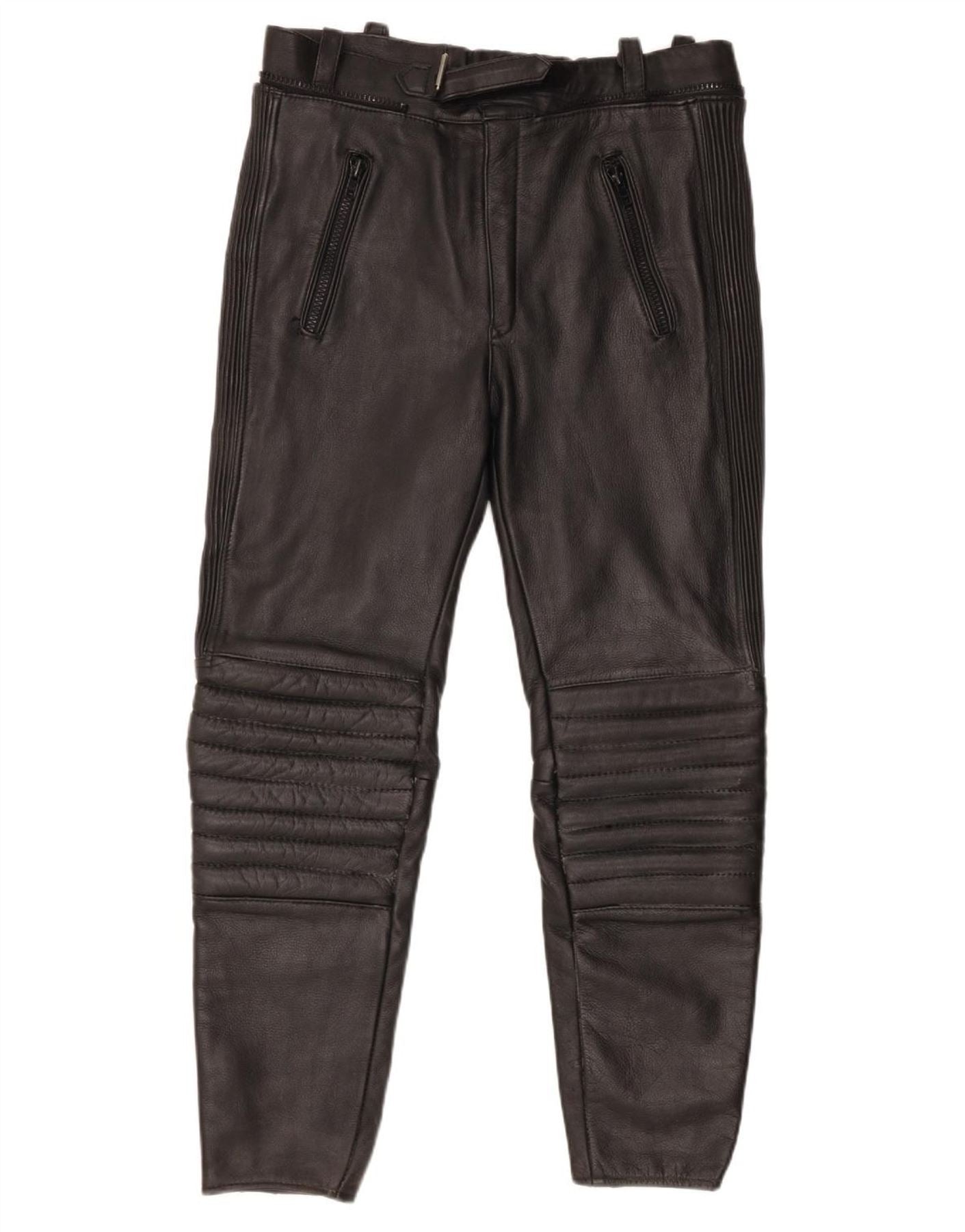 VINTAGE Mens Moto Racer Leather Trousers IT 52 Large W32 L27 Black Leather