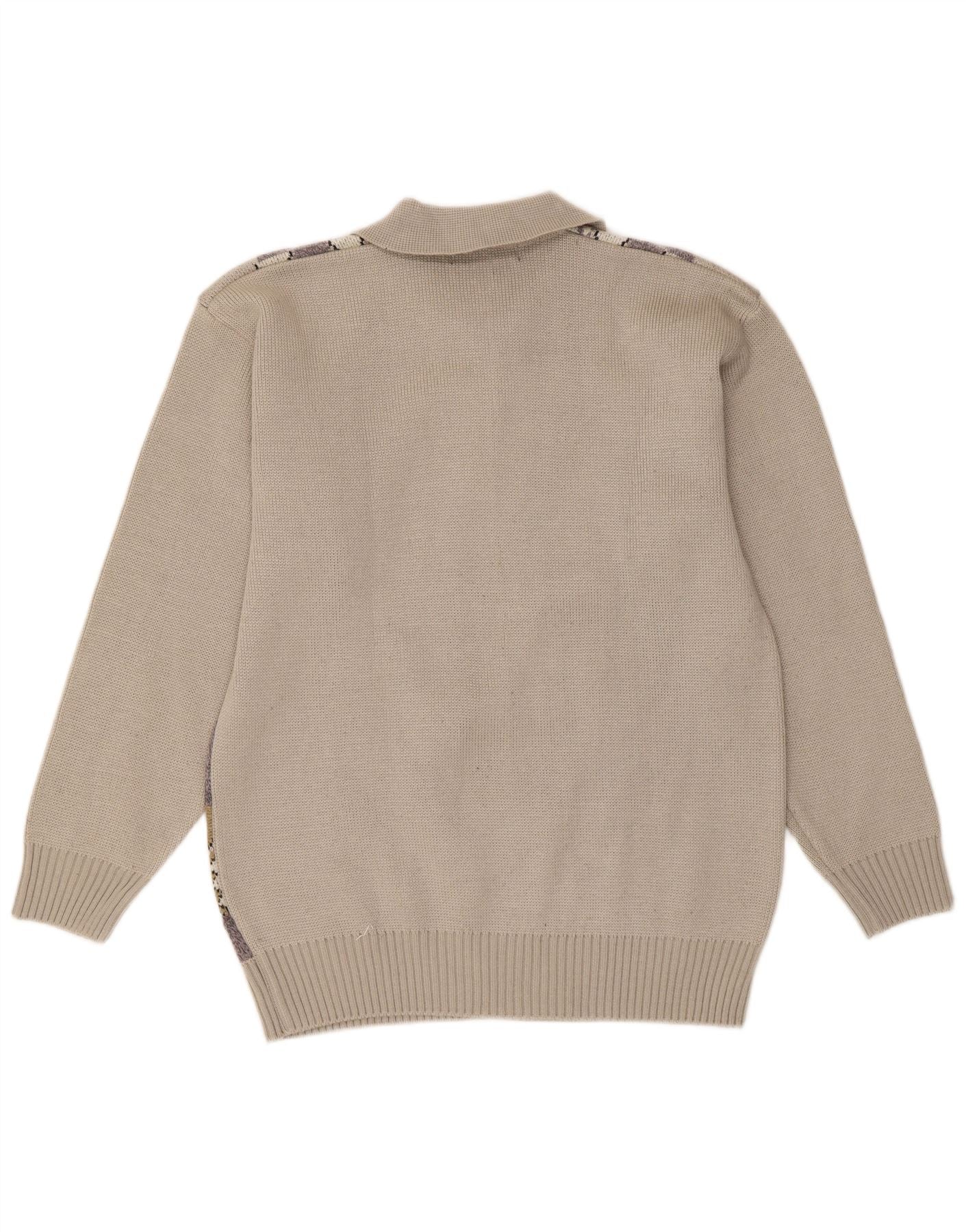 VINTAGE Mens Polo Neck Jumper Sweater IT 50 Medium Beige Geometric