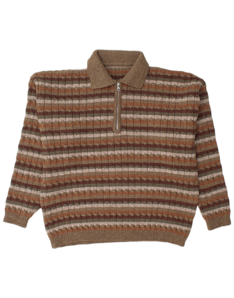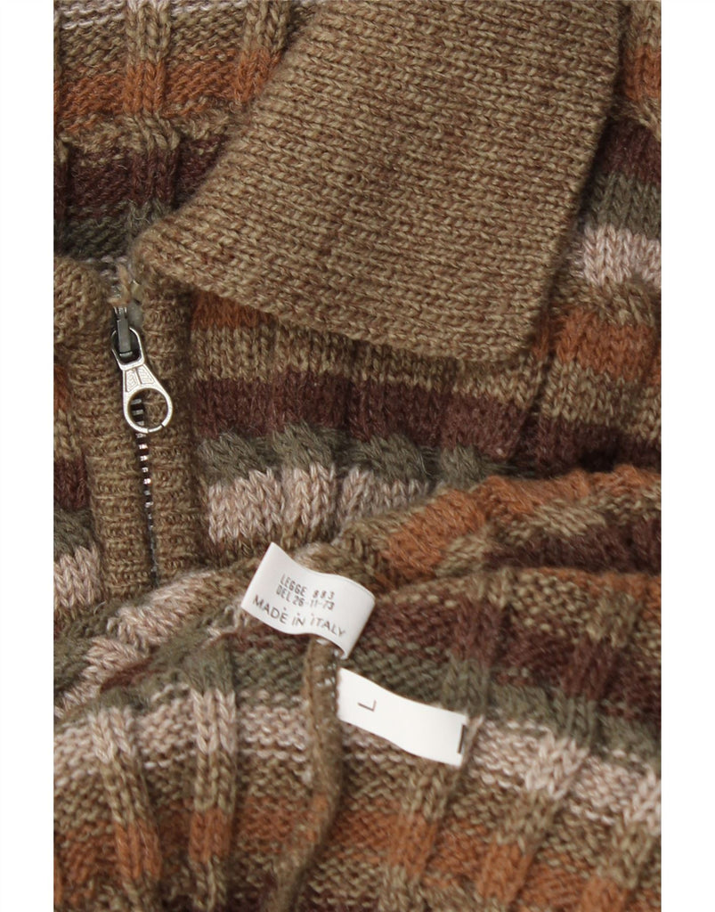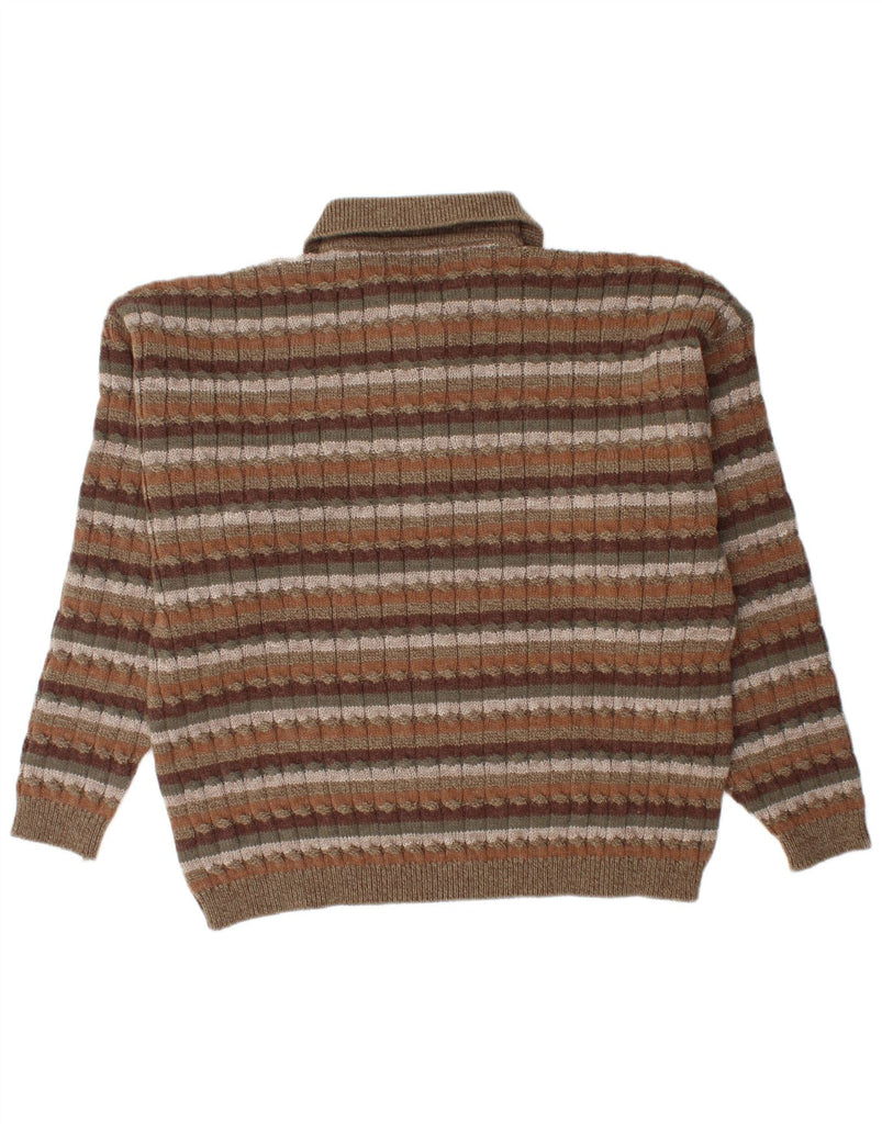 VINTAGE Mens Polo Neck Jumper Sweater Large Multicoloured Striped Wool