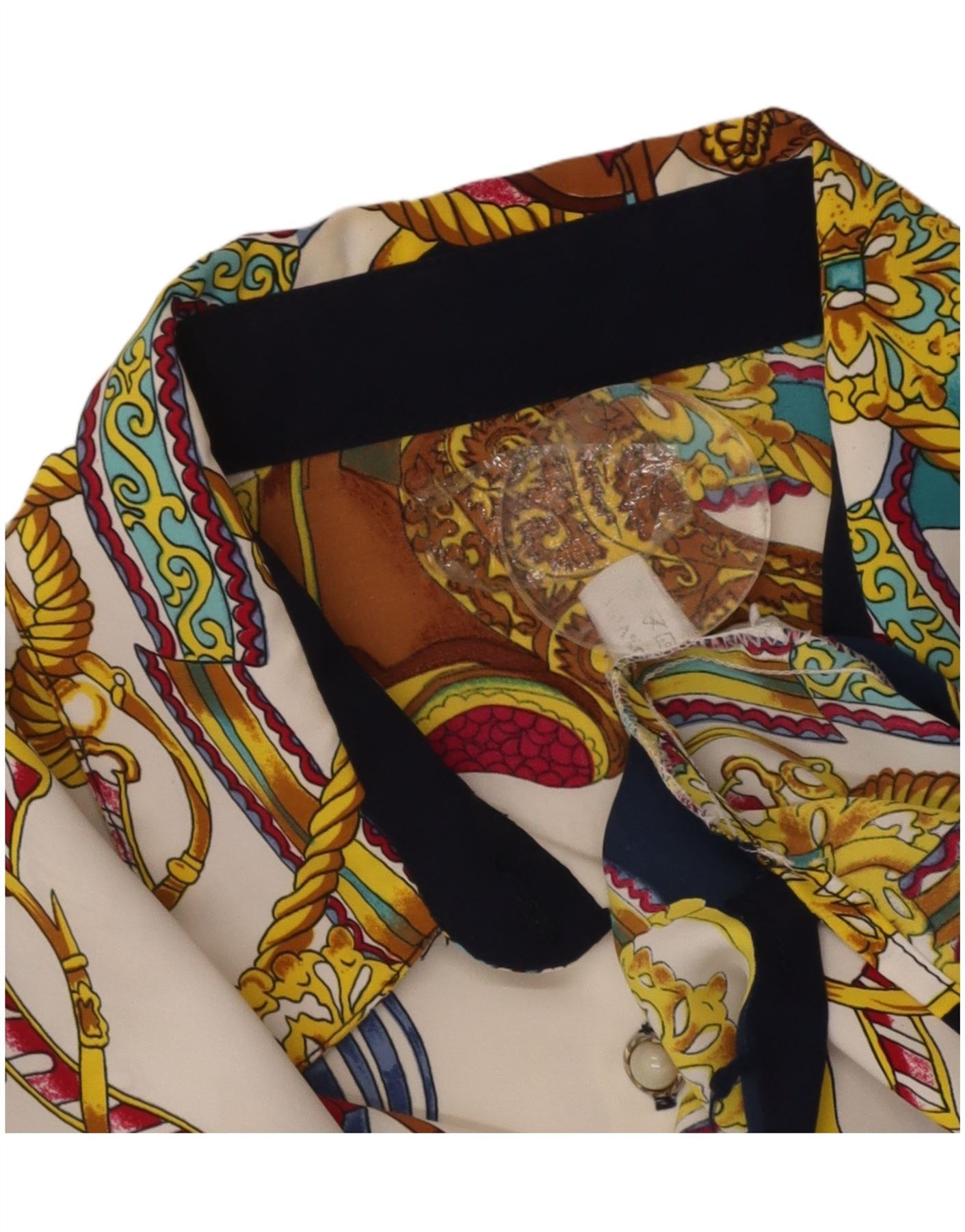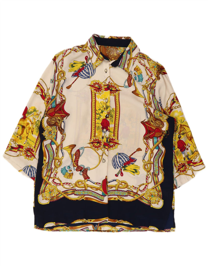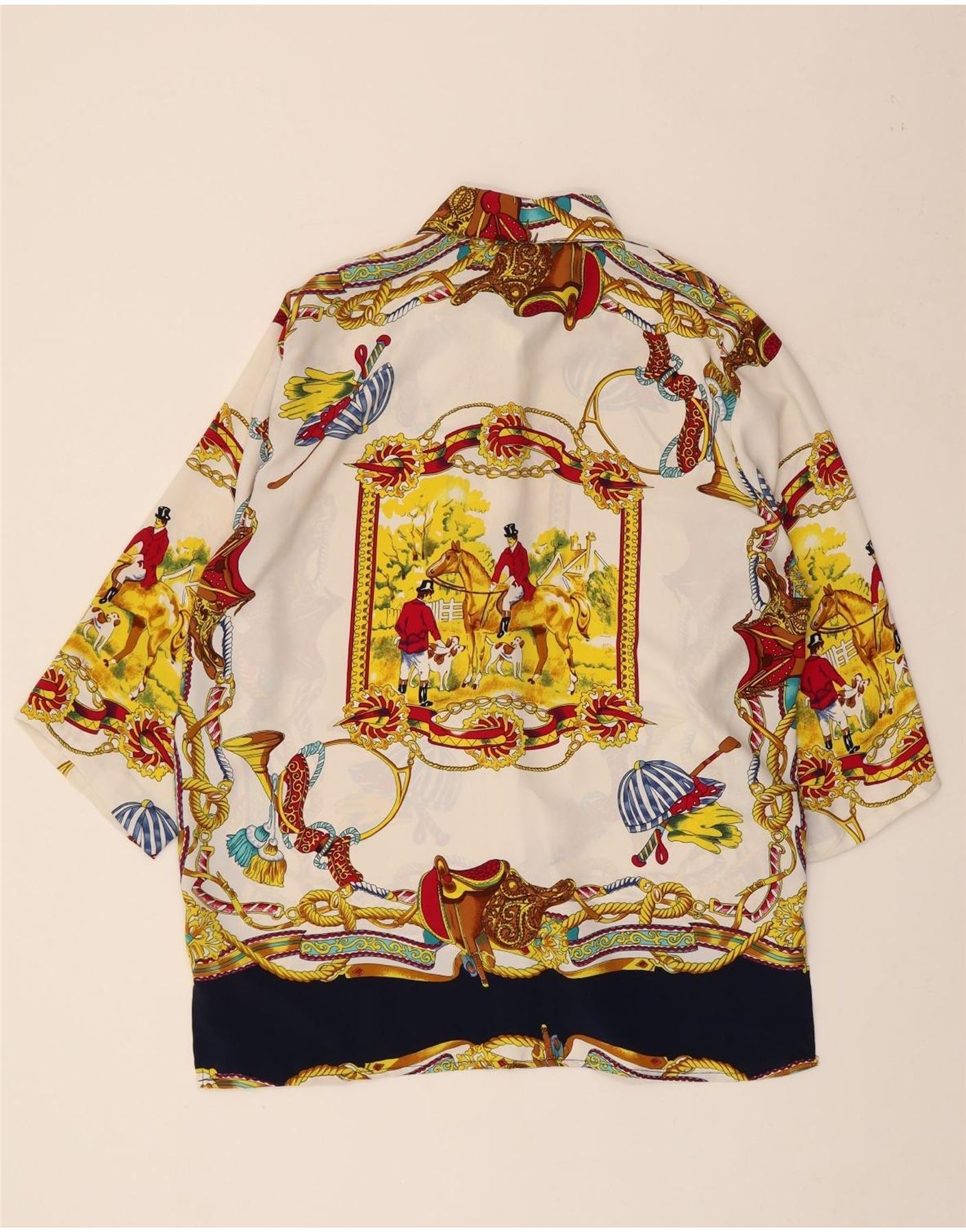 VINTAGE Mens Riding Abstract Pattern 3/4 Sleeve Shirt Large White Viscose