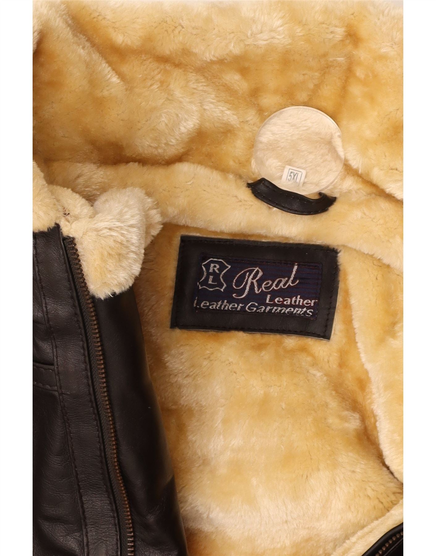 VINTAGE Mens Shearling Jacket UK 50 5XL Brown Leather