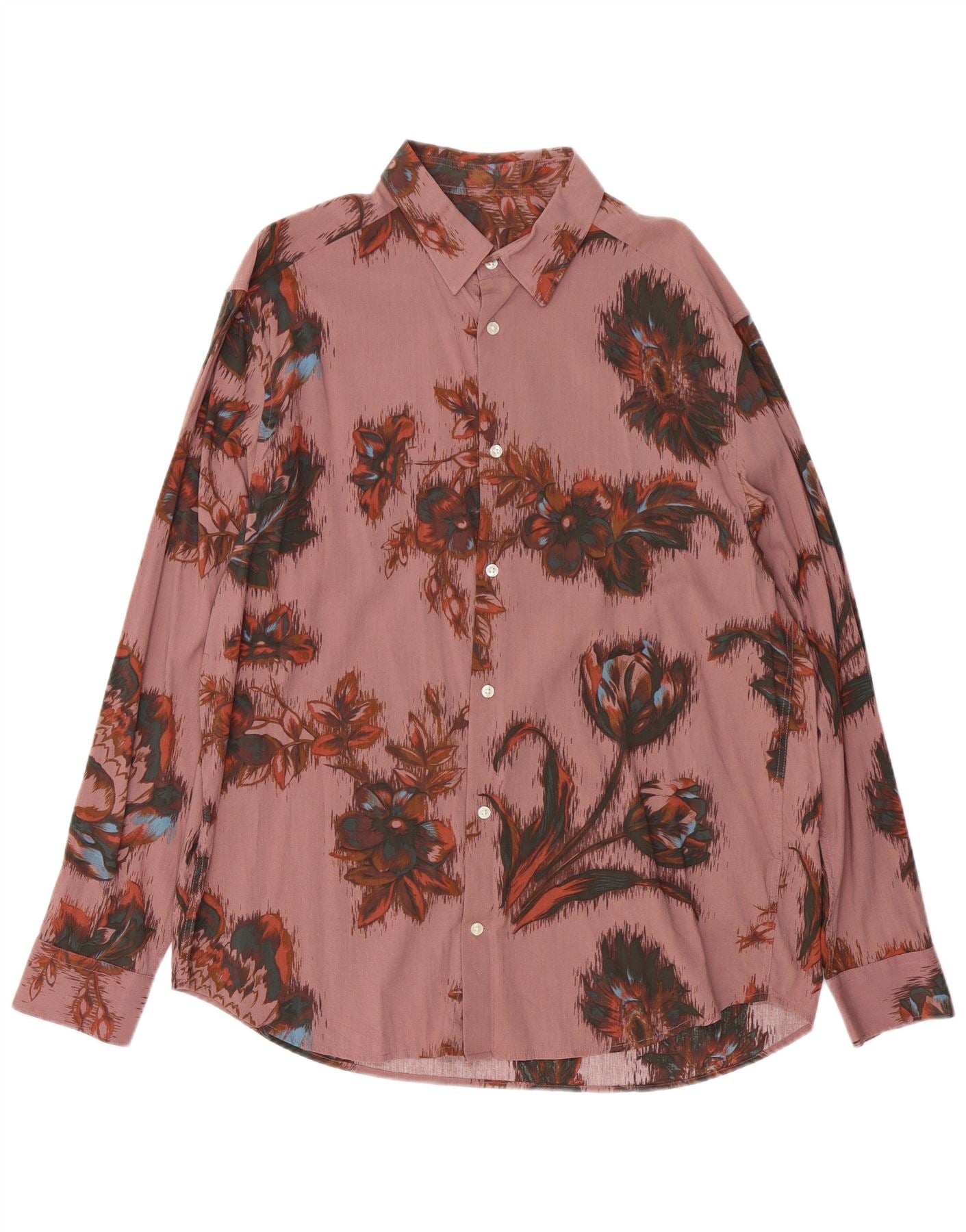 VINTAGE Mens Shirt Large Pink Floral Cotton
