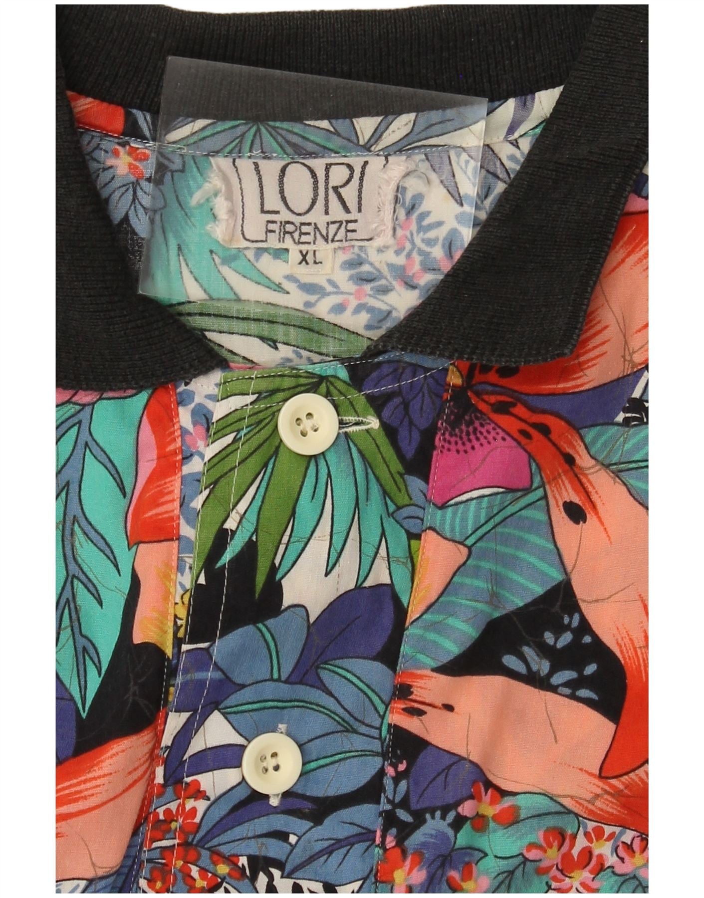 - AI Description: This Lori Firenze mens graphic shirt showcases a vibrant multicoloured floral pattern on a woven fabric. It features a classic collared neckline and short sleeves. The regular fit ensures comfortable wear. The tropical Hawaiian print bursts with shades of blue, green, and pink. Button accents provide a neat front closure, completing this relaxed, stylish piece.