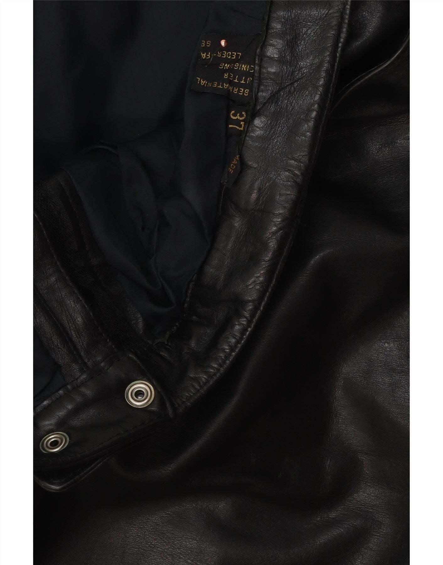 Vintage Mens Slim Leather Trousers W37 L34 Black Leather