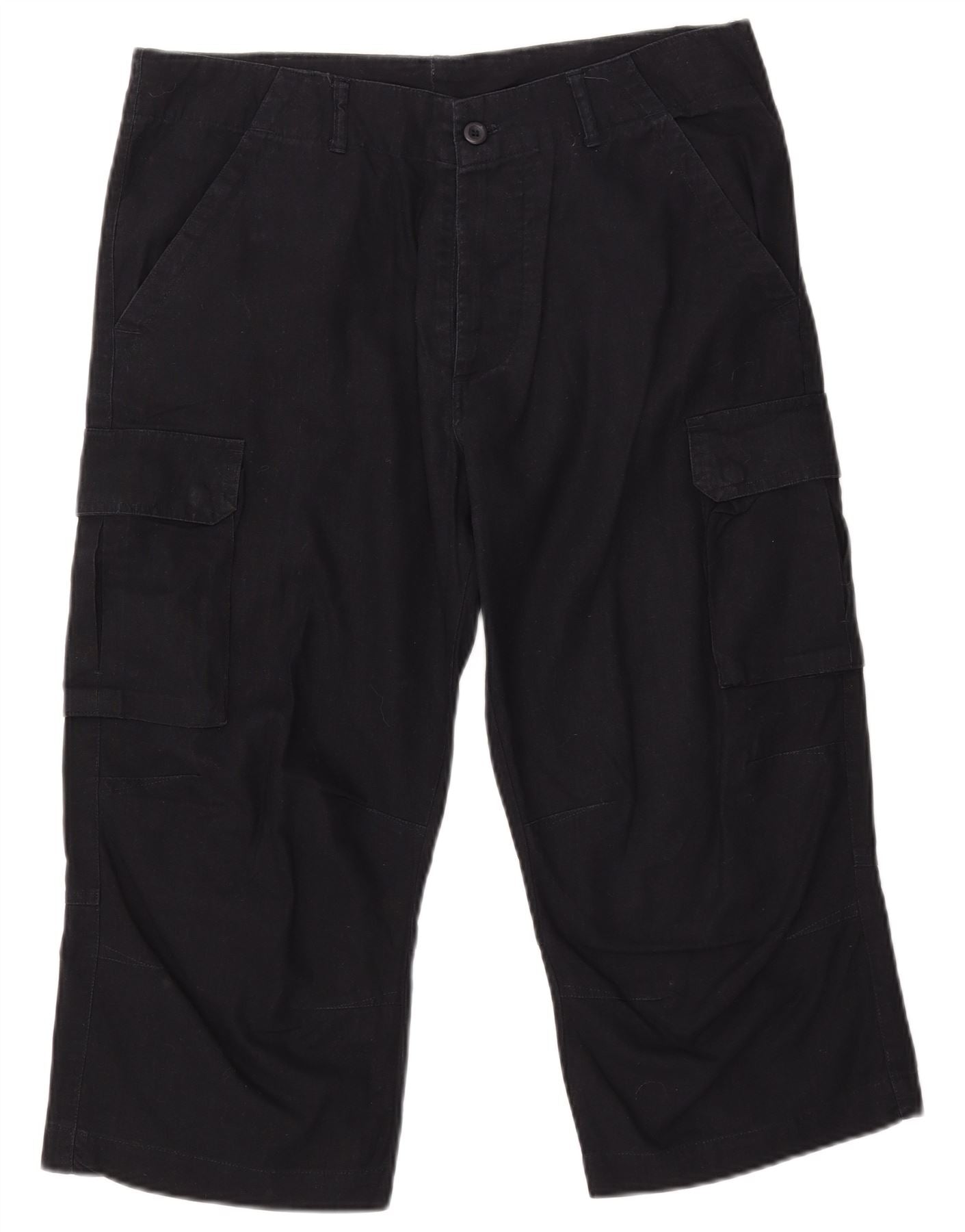 VINTAGE Mens Straight Cargo Capri Trousers W34 L21 Navy Blue