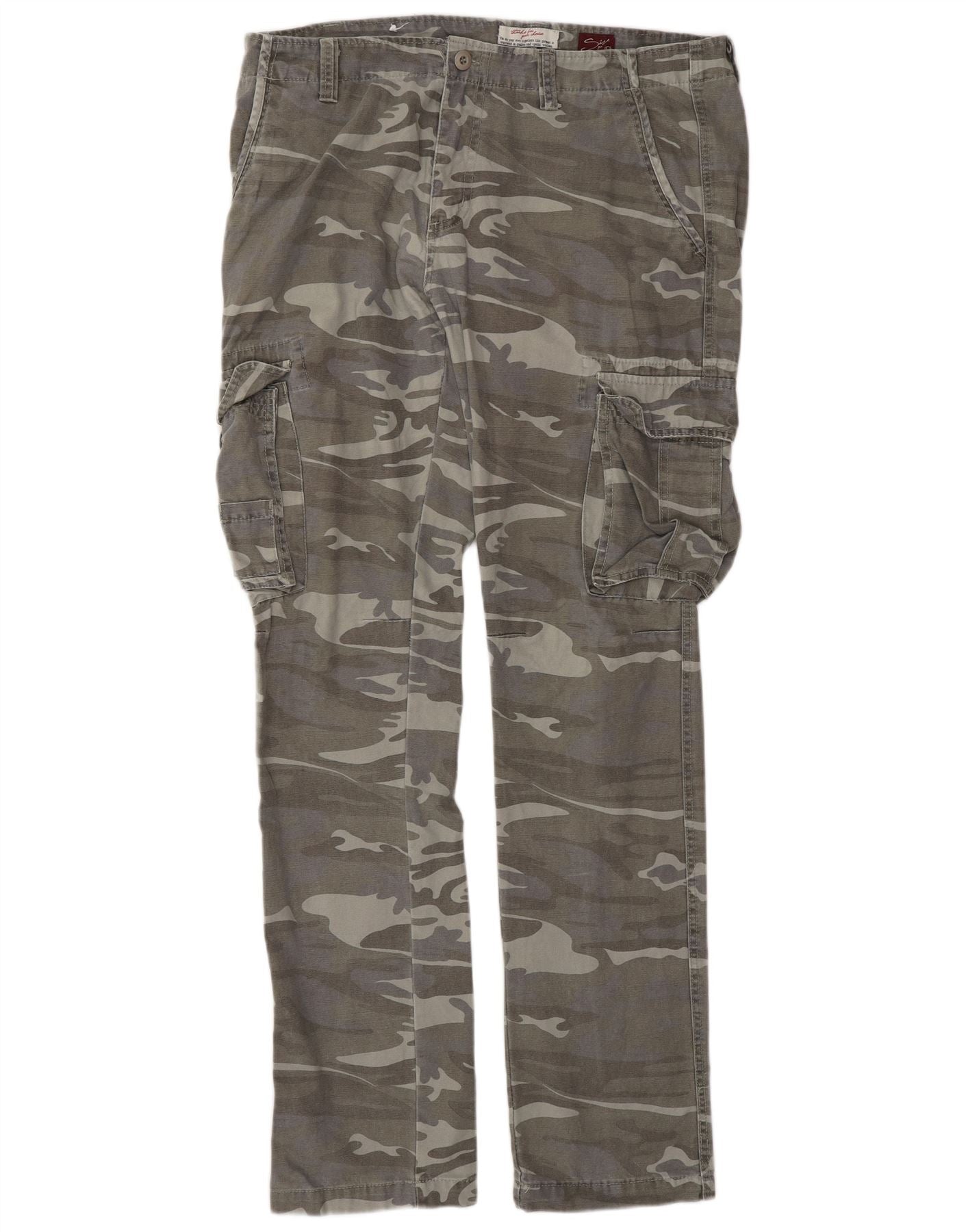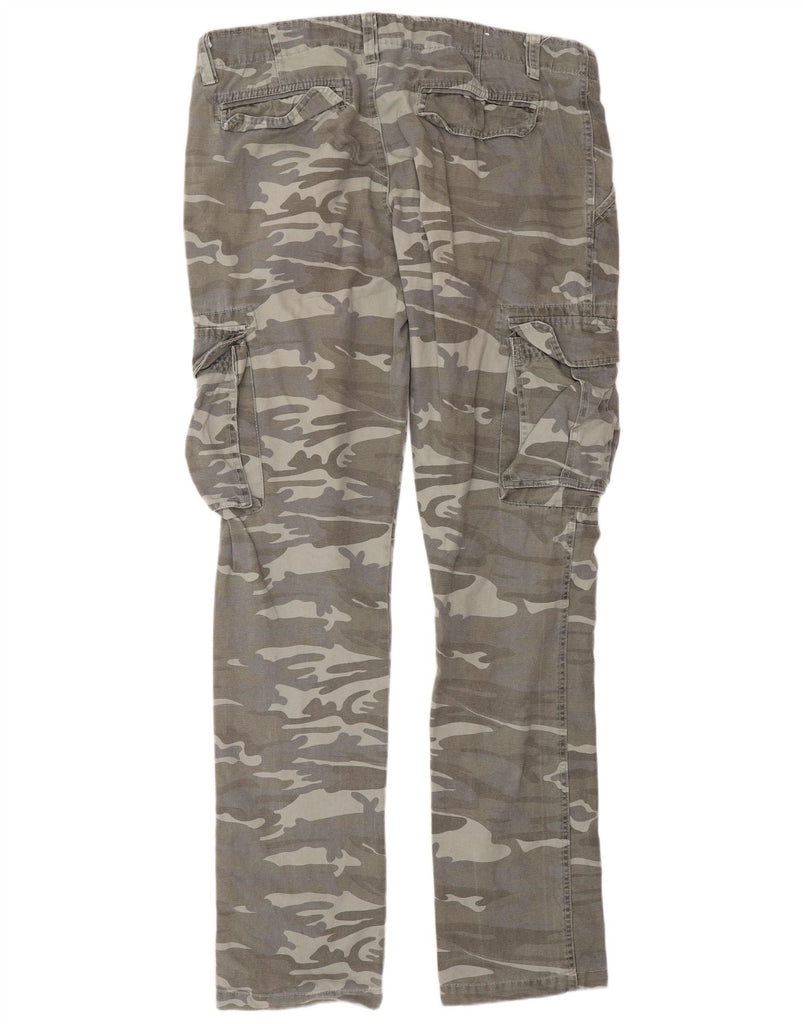 VINTAGE Mens Straight Cargo Trousers IT 52 XL W36 L34 Grey Camouflage