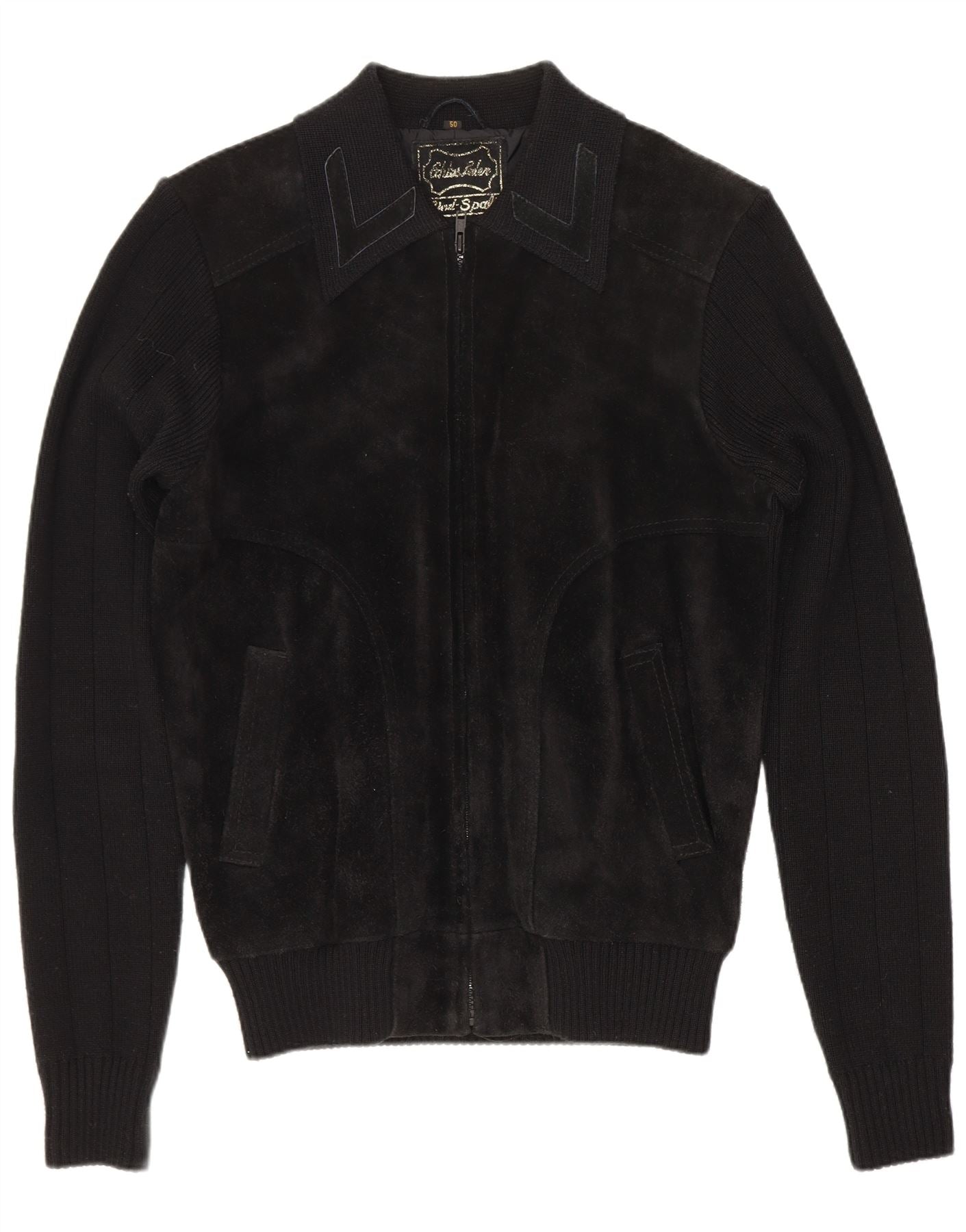 VINTAGE Mens Suede Bomber Jacket EU 50 Large Black Leather
