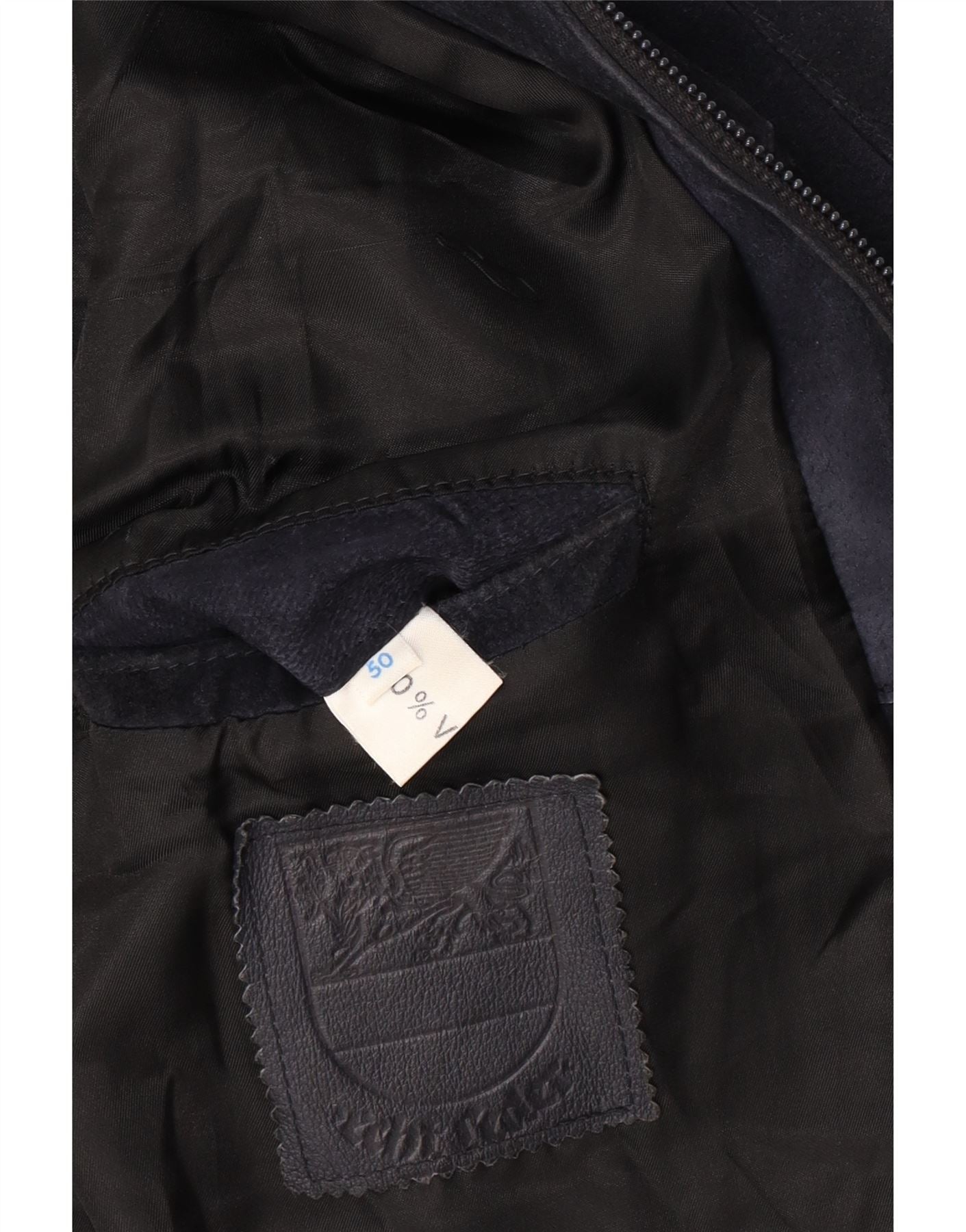 VINTAGE Mens Suede Bomber Jacket IT 50 Large Navy Blue Leather