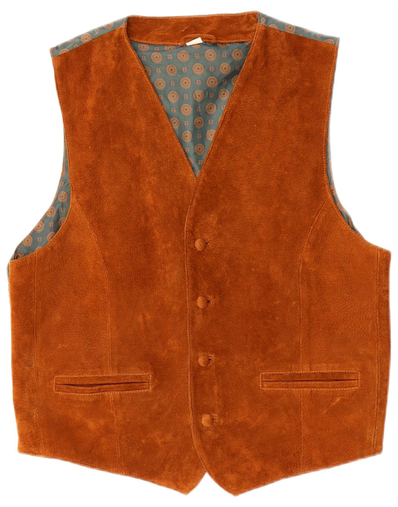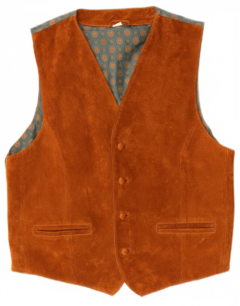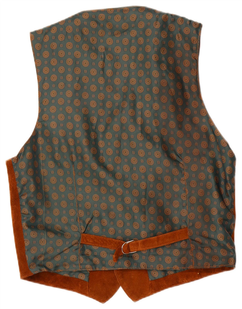 VINTAGE Mens Suede Waistcoat IT 50 Medium Brown Spotted Leather