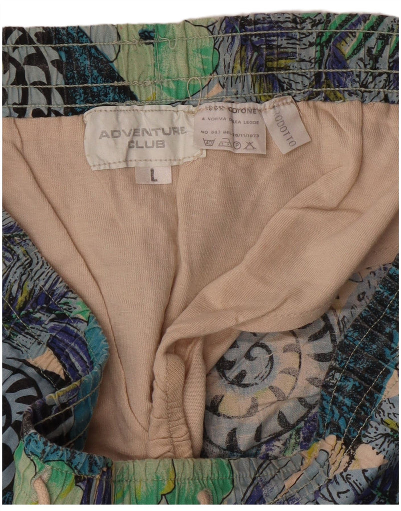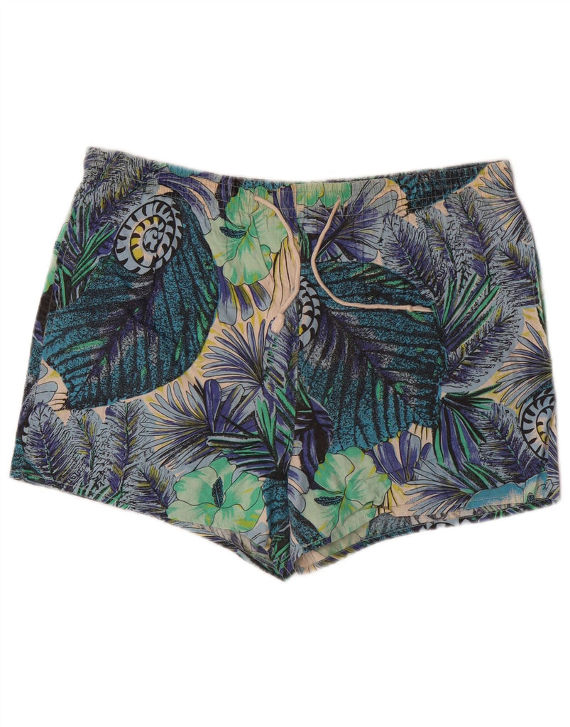 VINTAGE Mens Swimming Shorts Large Multicoloured Floral Cotton