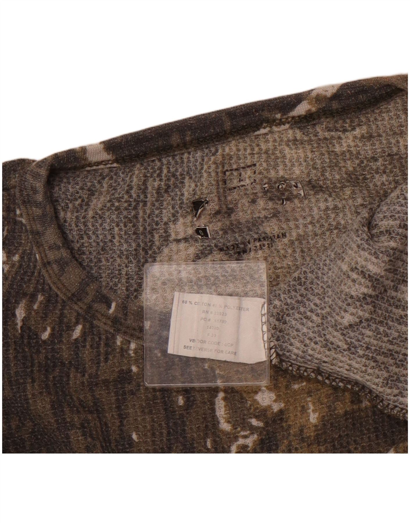 VINTAGE Mens Top Long Sleeve Large Beige Camouflage Cotton