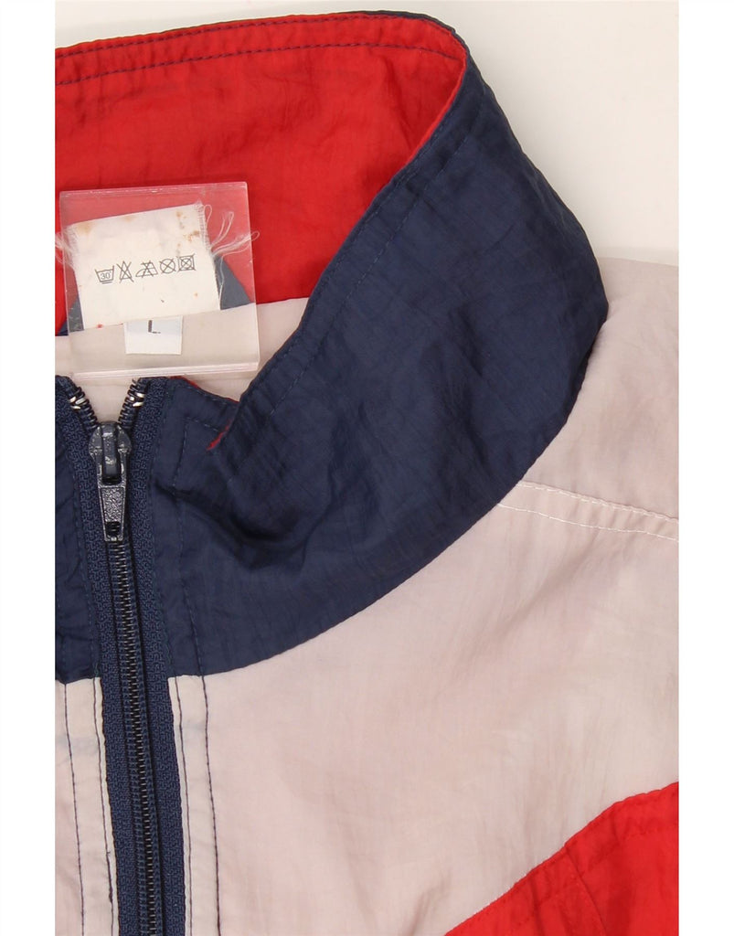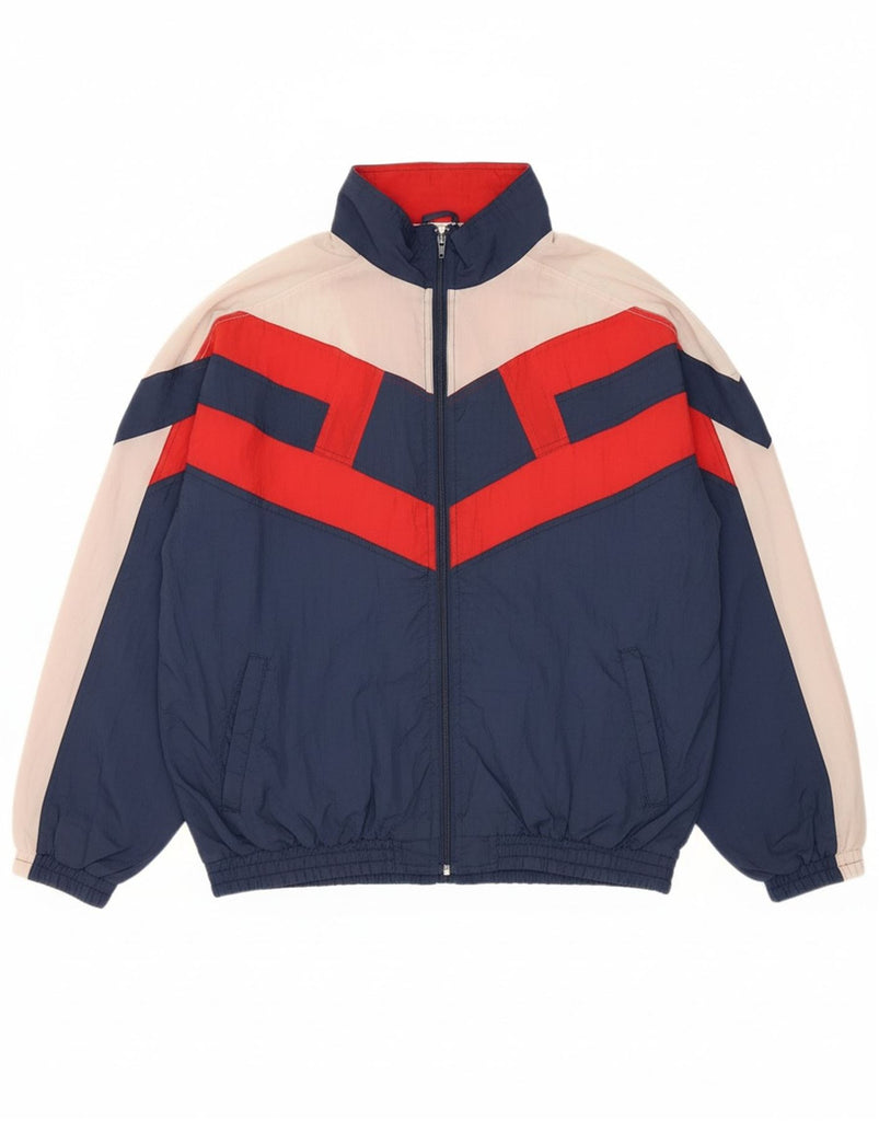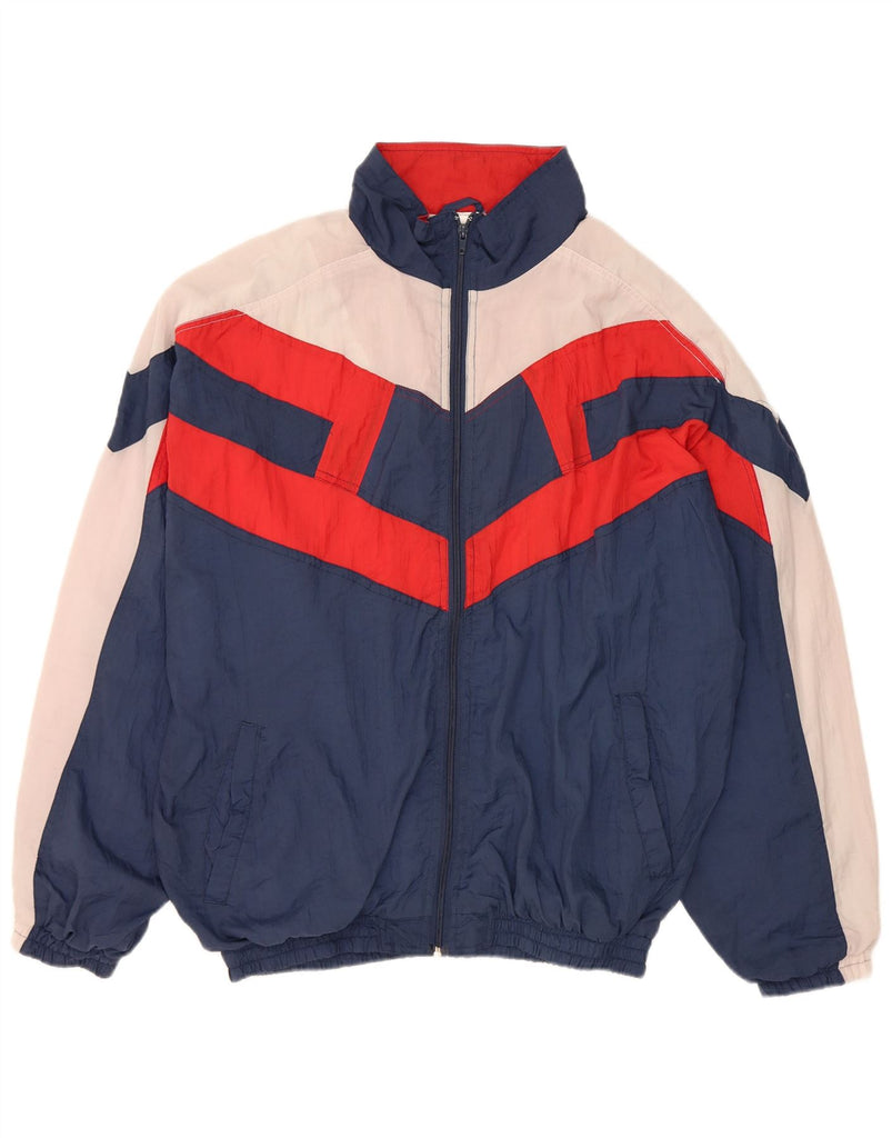 VINTAGE Mens Tracksuit Top Jacket Large Navy Blue Colourblock Polyamide