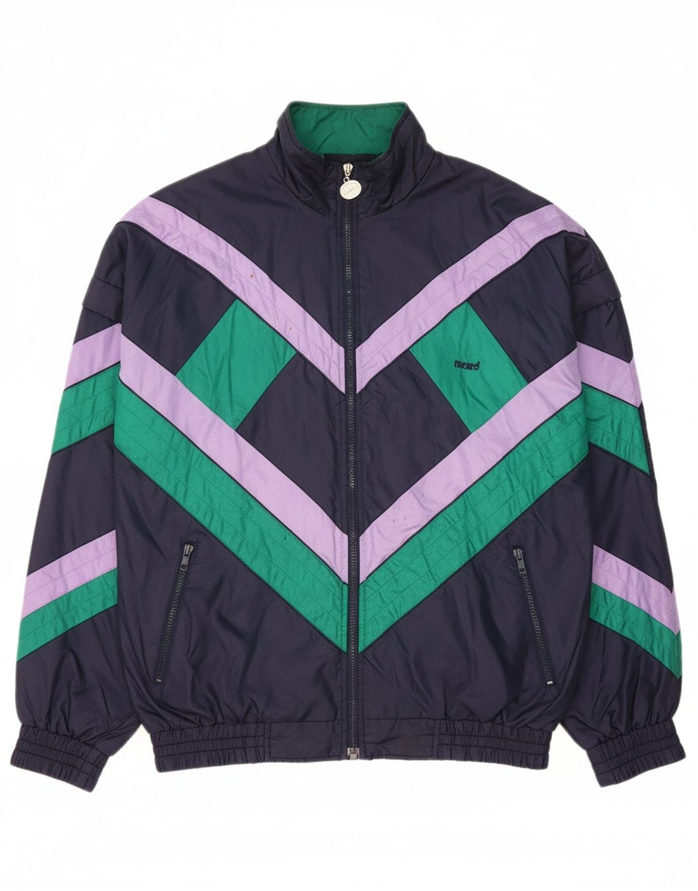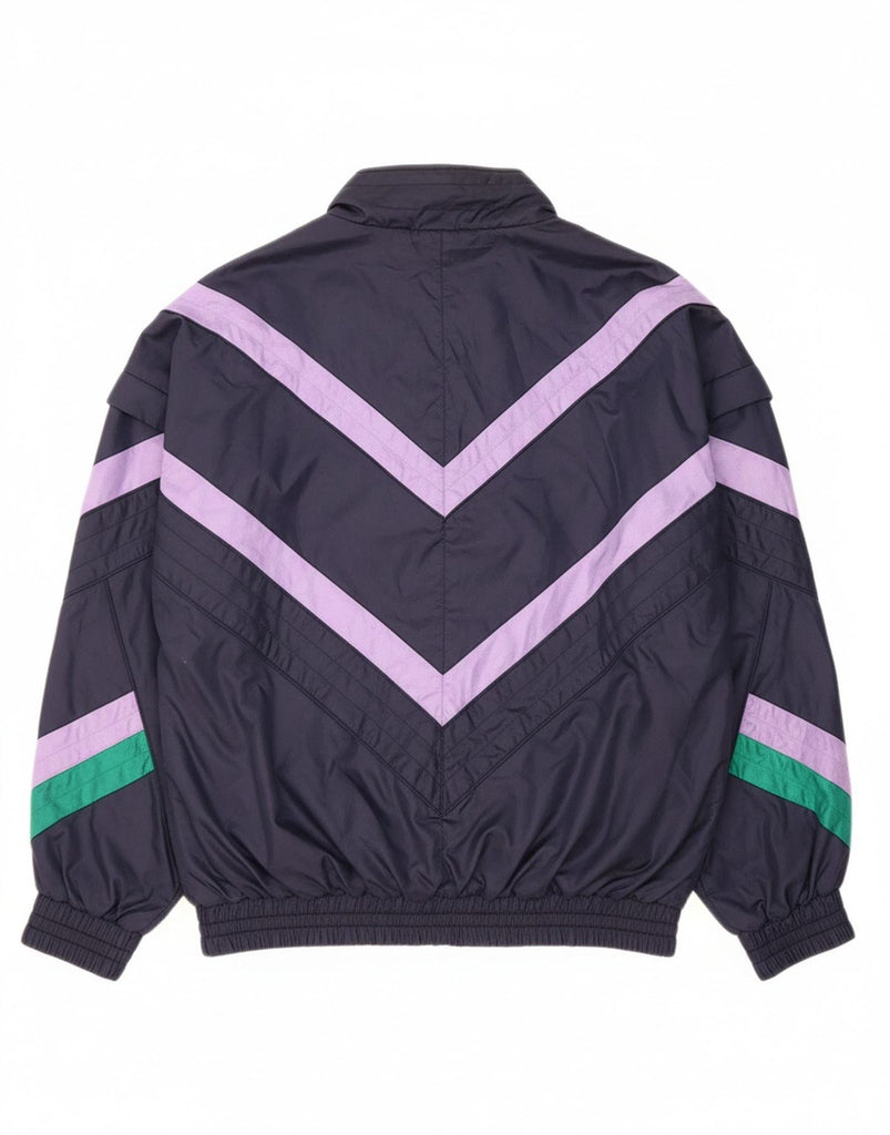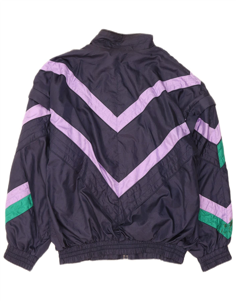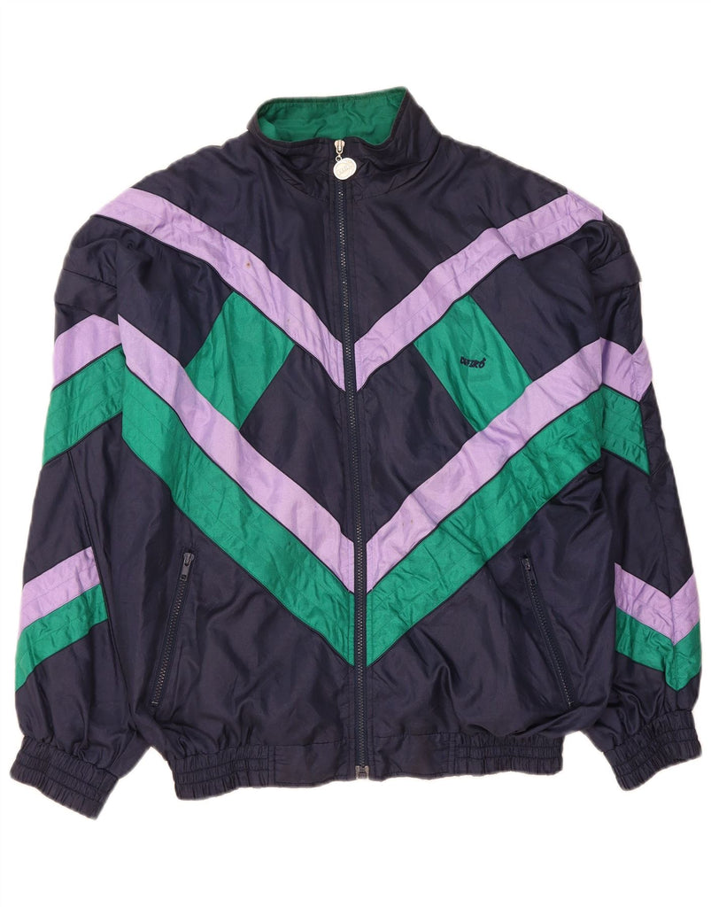 VINTAGE Mens Tracksuit Top Jacket Large Navy Blue Geometric Polyamide