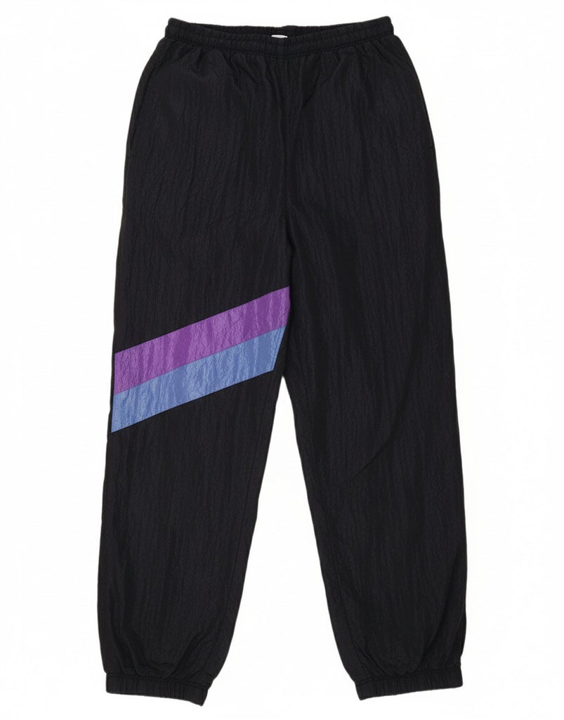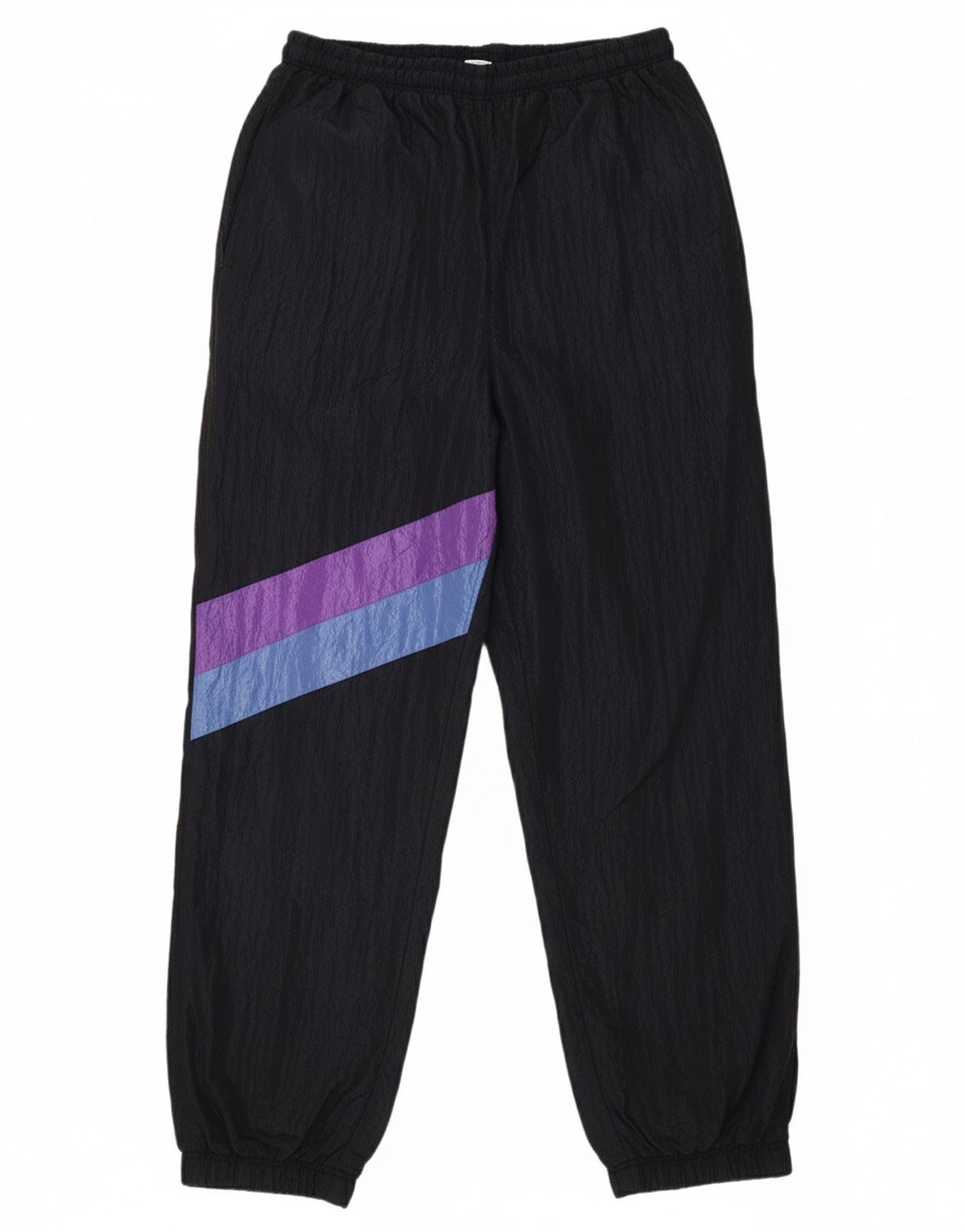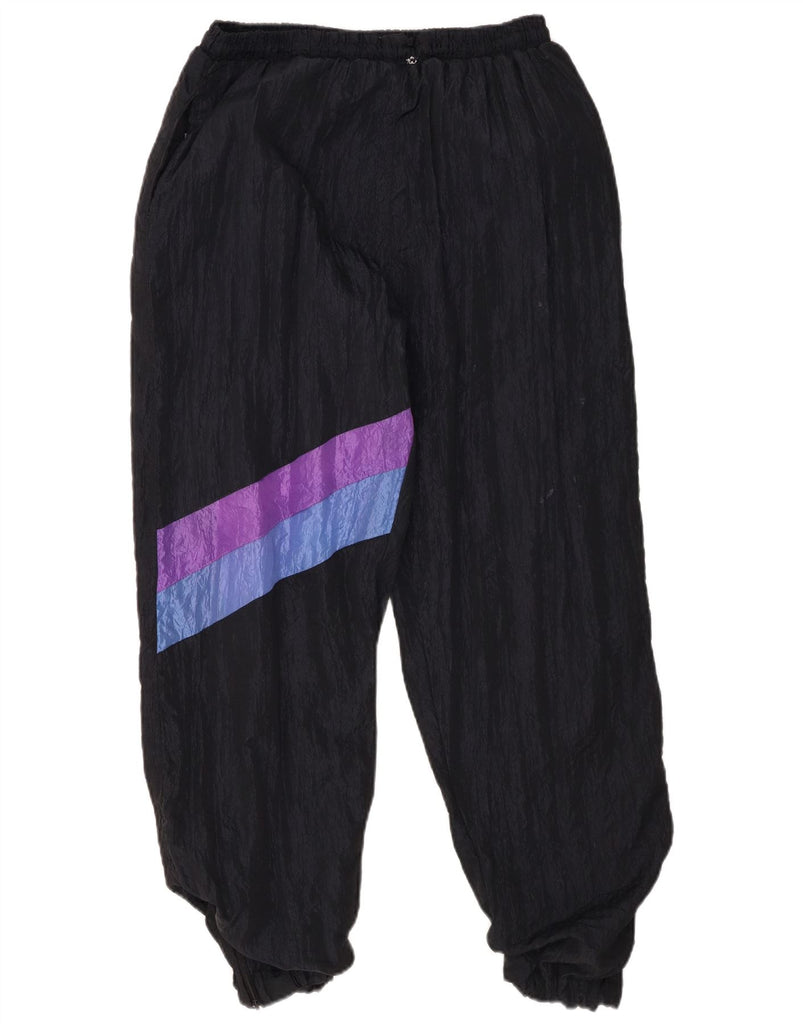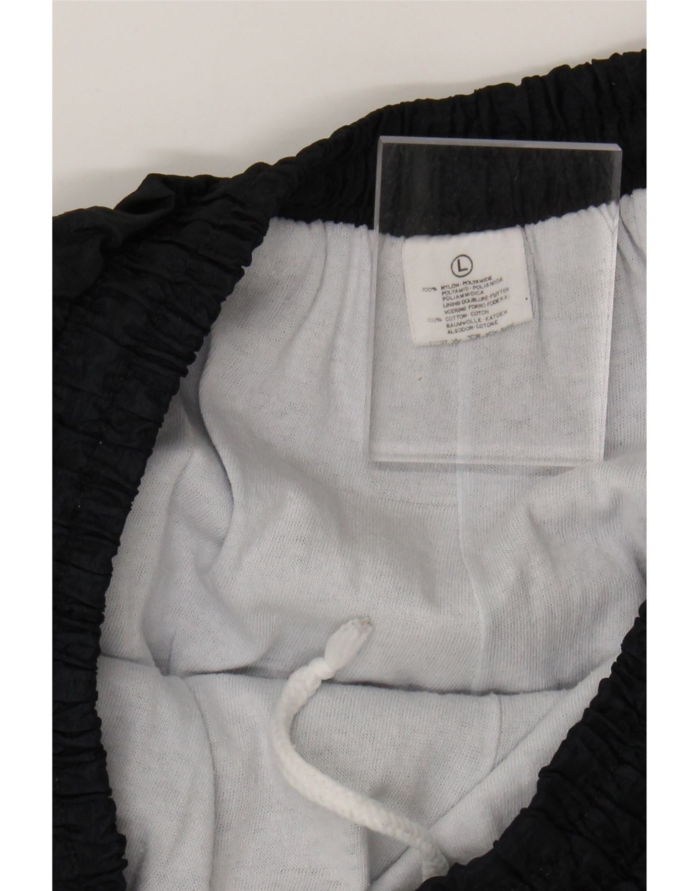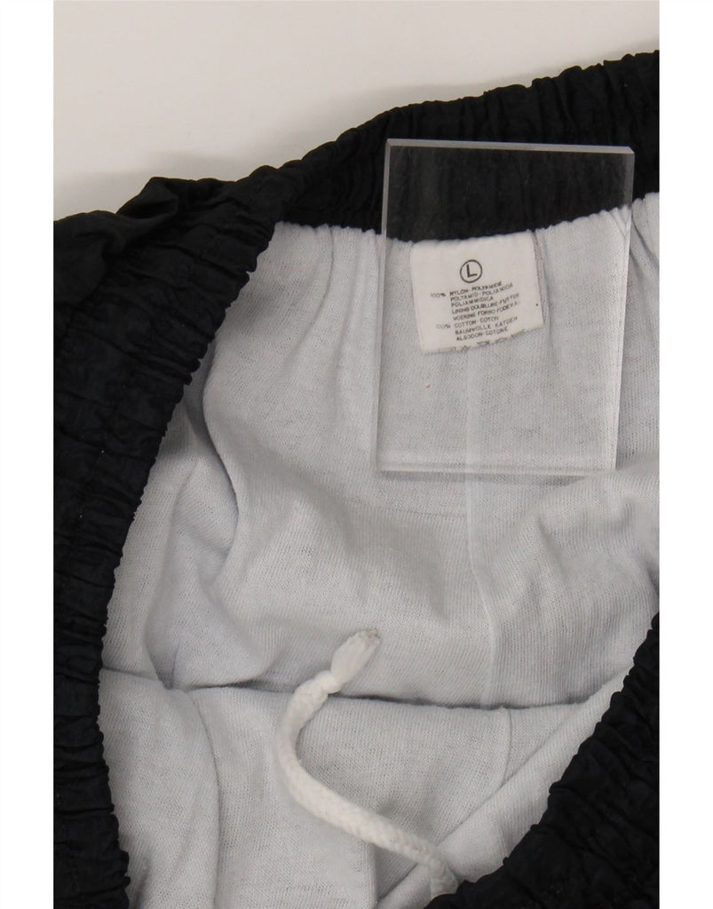VINTAGE Mens Tracksuit Trousers Joggers Large Black Striped Nylon