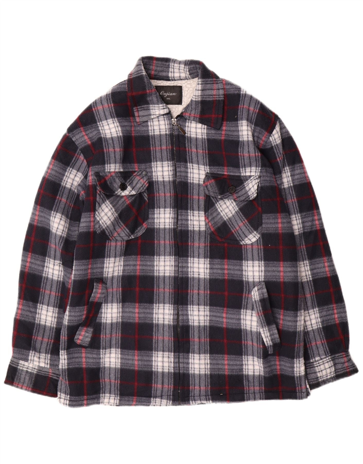 Vintage Mens Utility Jacket UK 44 2XL Navy Blue Check Cotton