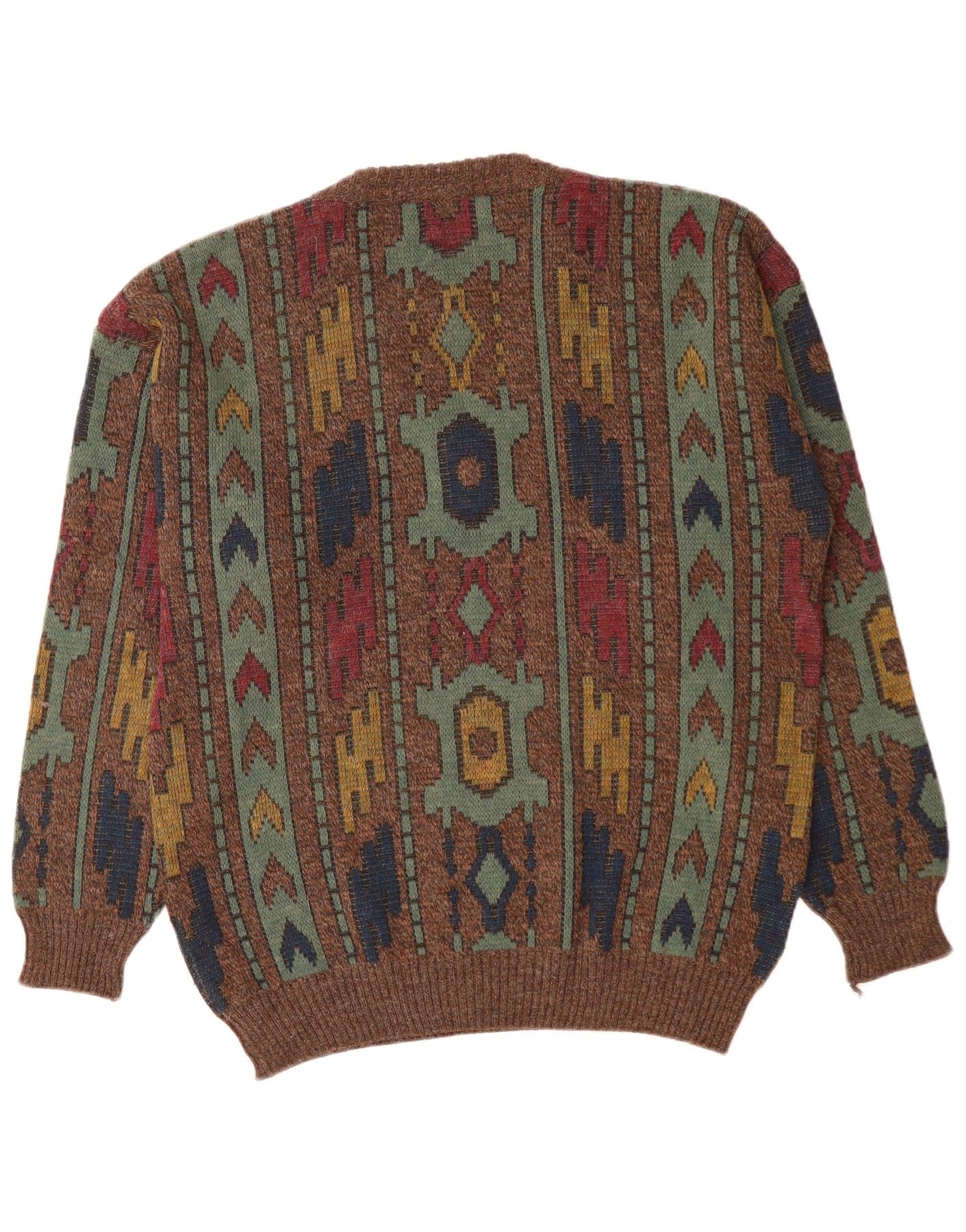 VINTAGE Mens V-Neck Jumper Sweater IT 50 Medium Brown Geometric