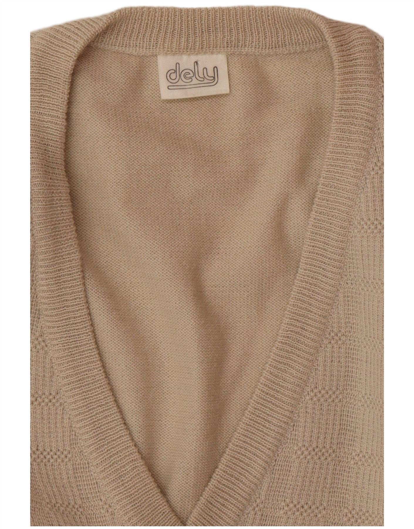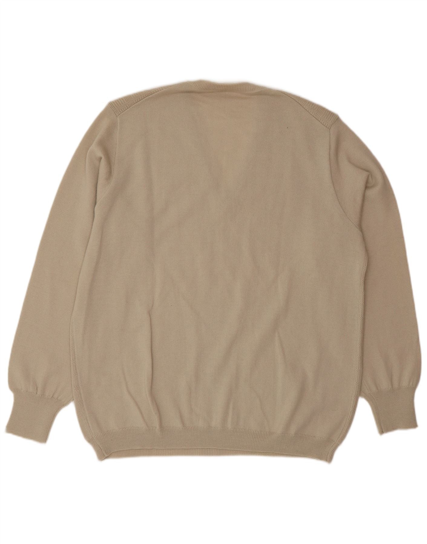 VINTAGE Mens V-Neck Jumper Sweater Large Beige Wool