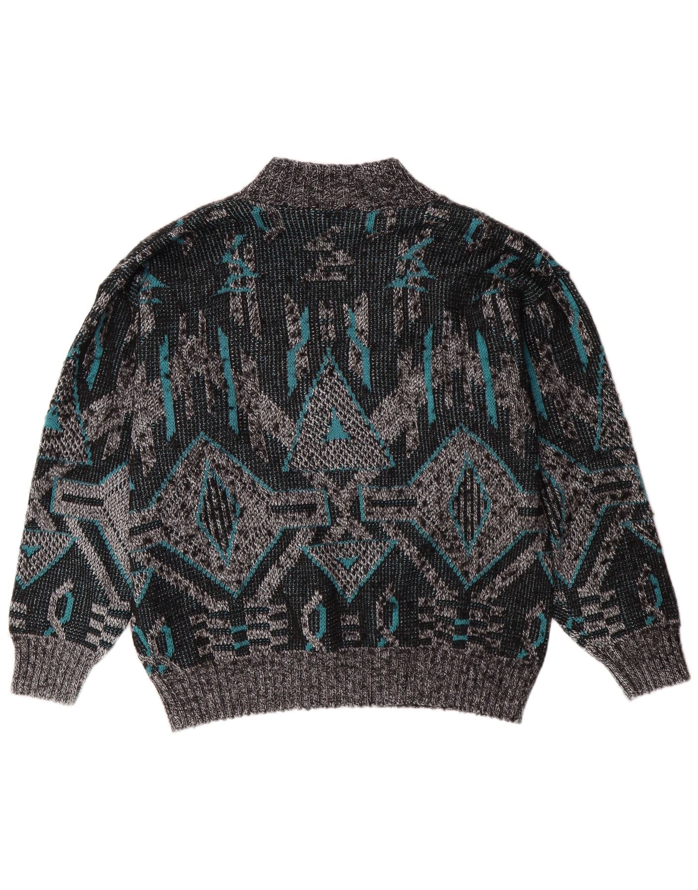 VINTAGE Mens V-Neck Jumper Sweater Large Grey Geometric