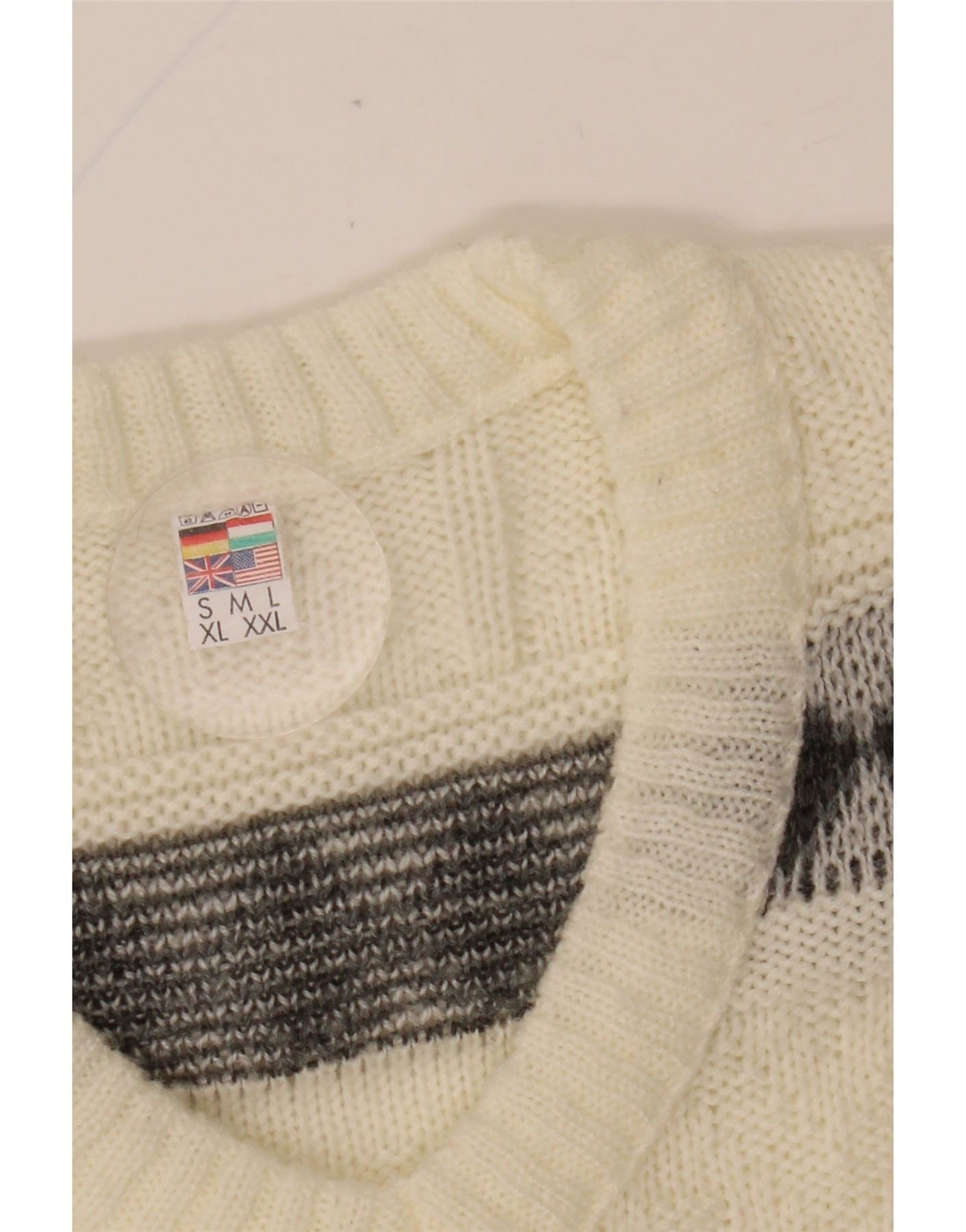VINTAGE Mens V-Neck Jumper Sweater Large Off White Fair Isle