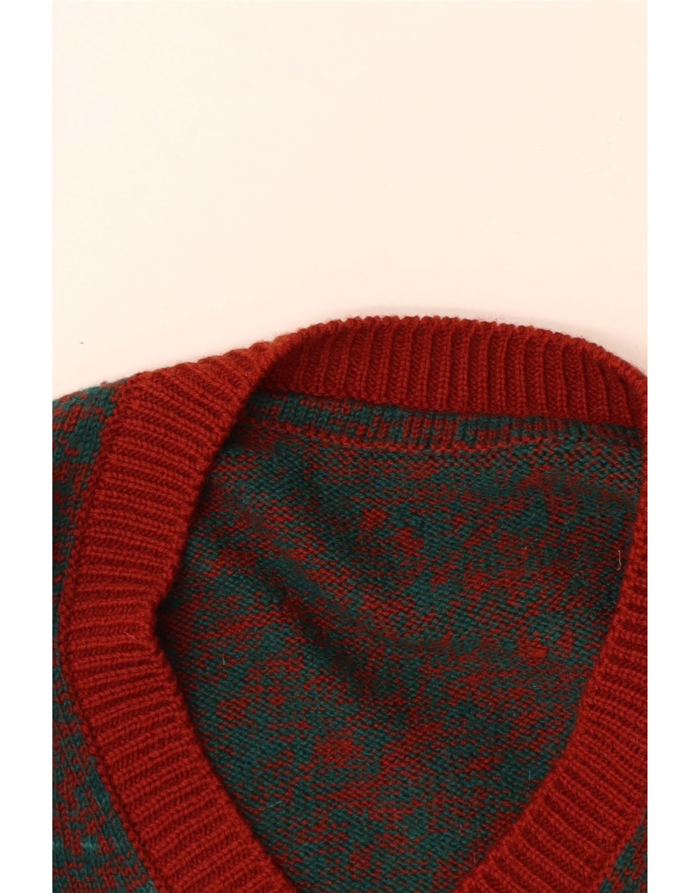 VINTAGE Mens V-Neck Jumper Sweater Medium Red Flecked