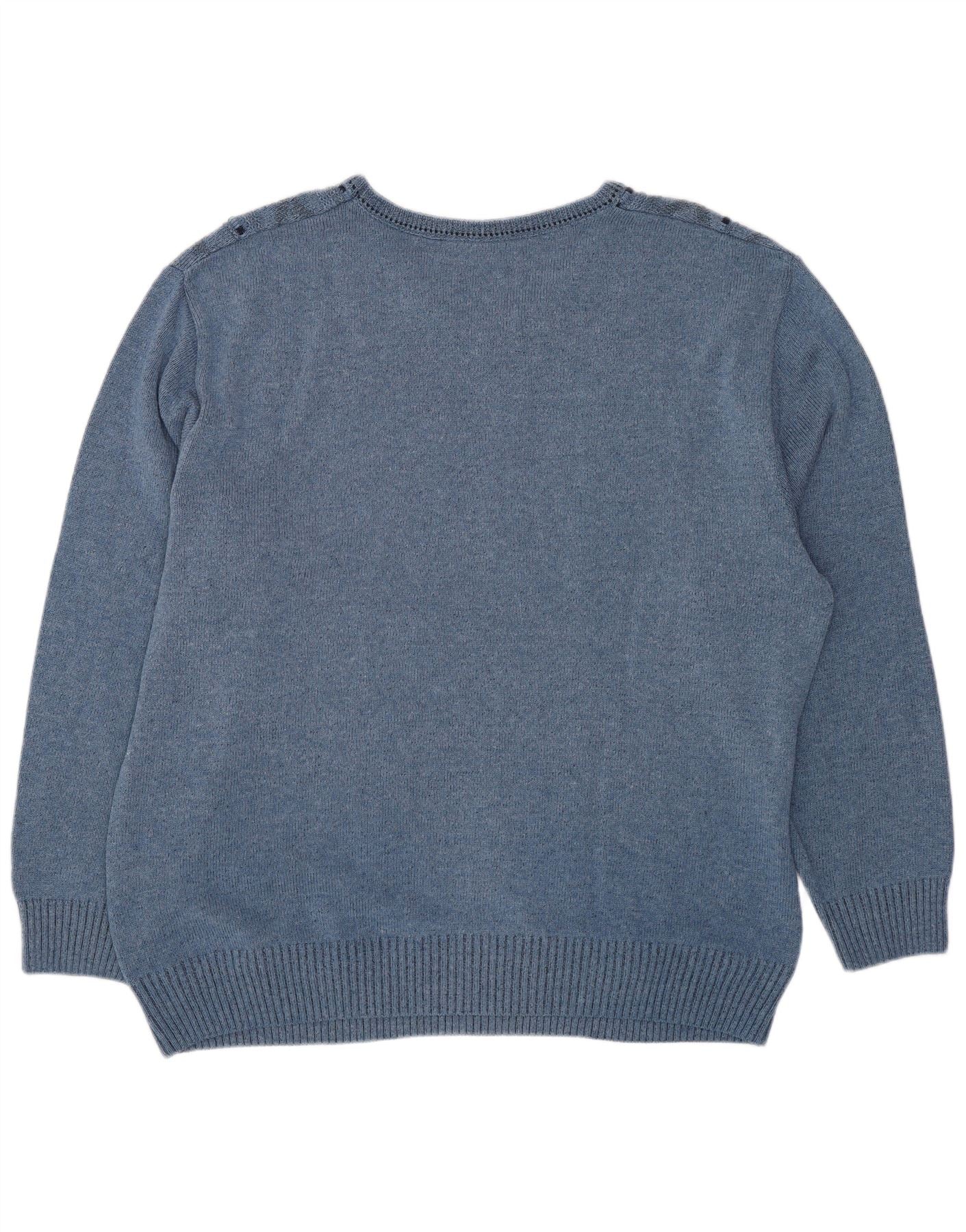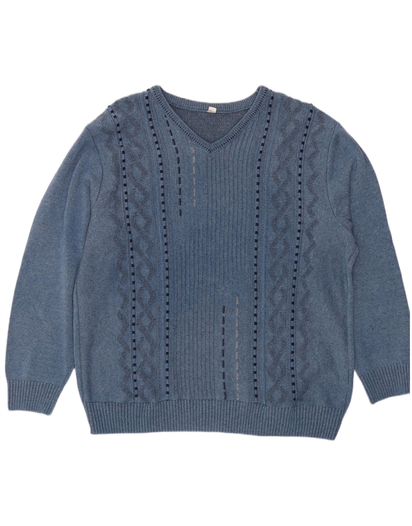 VINTAGE Mens V-Neck Jumper Sweater UK 44 XL Blue Geometric Cotton