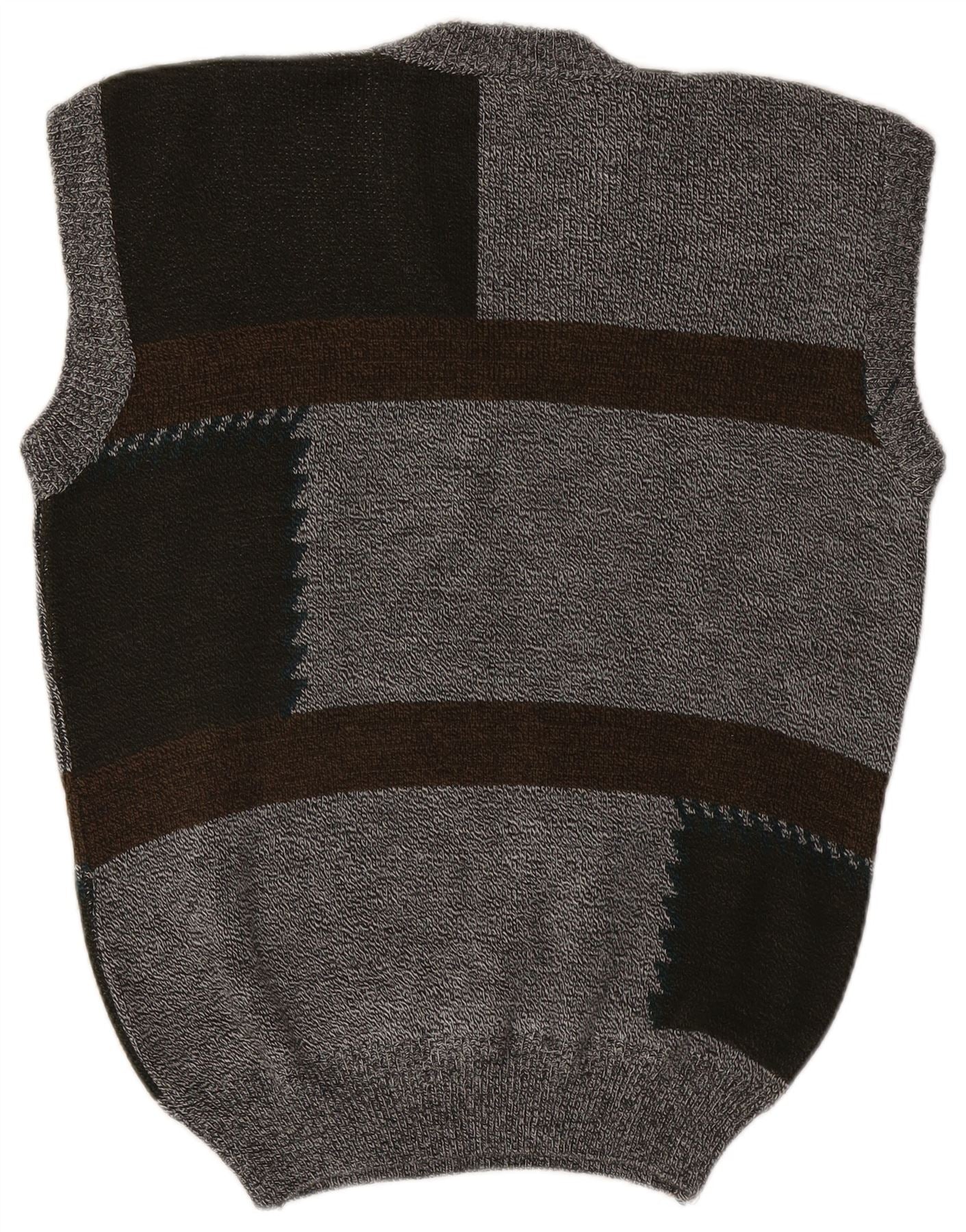 VINTAGE Mens Vest Tank Top Medium Grey Colourblock Acrylic
