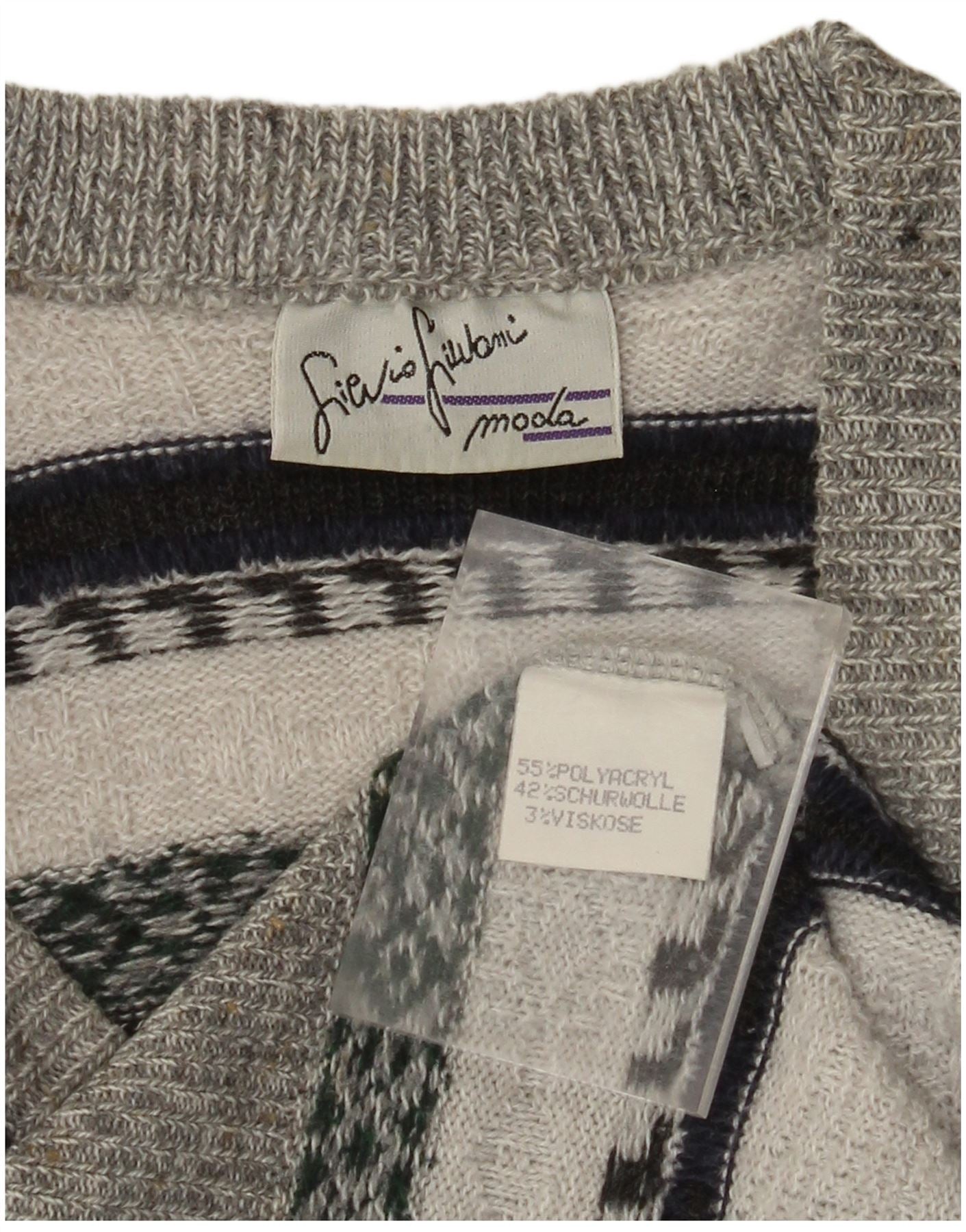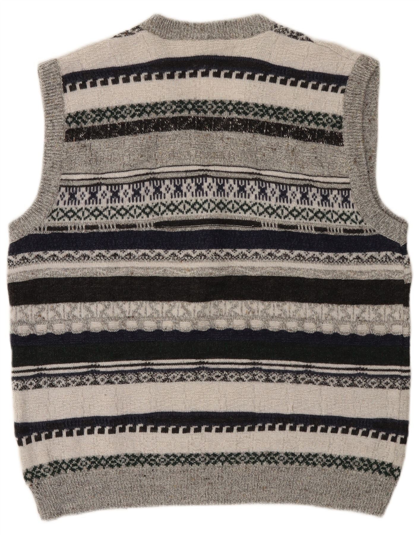 VINTAGE Mens Vest Tank Top Medium Grey Striped Polyacrylic