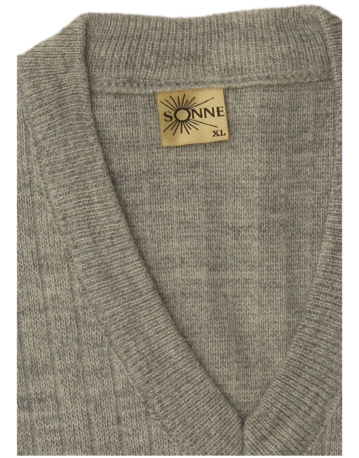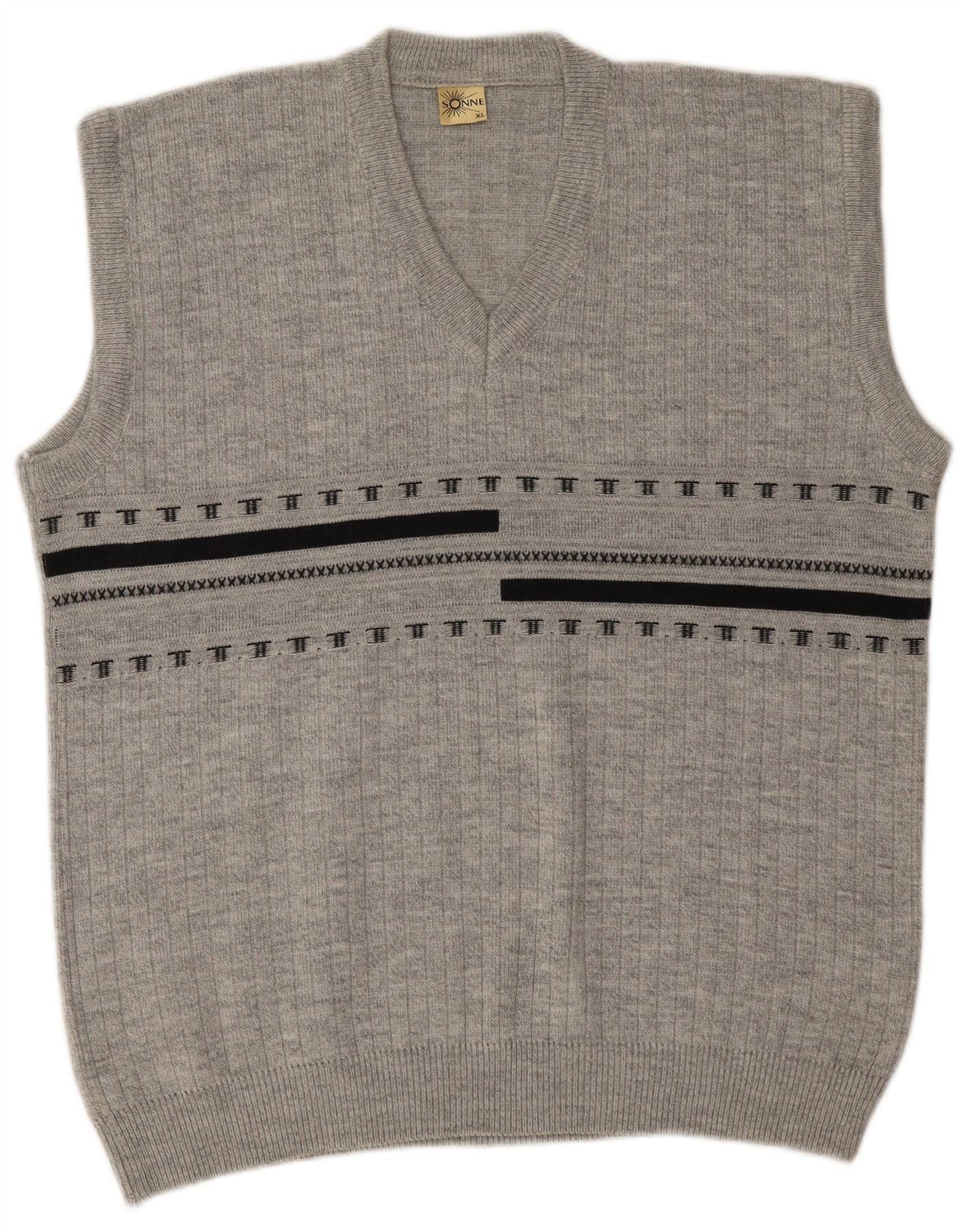 VINTAGE Mens Vest Tank Top XL Grey Striped Acrylic