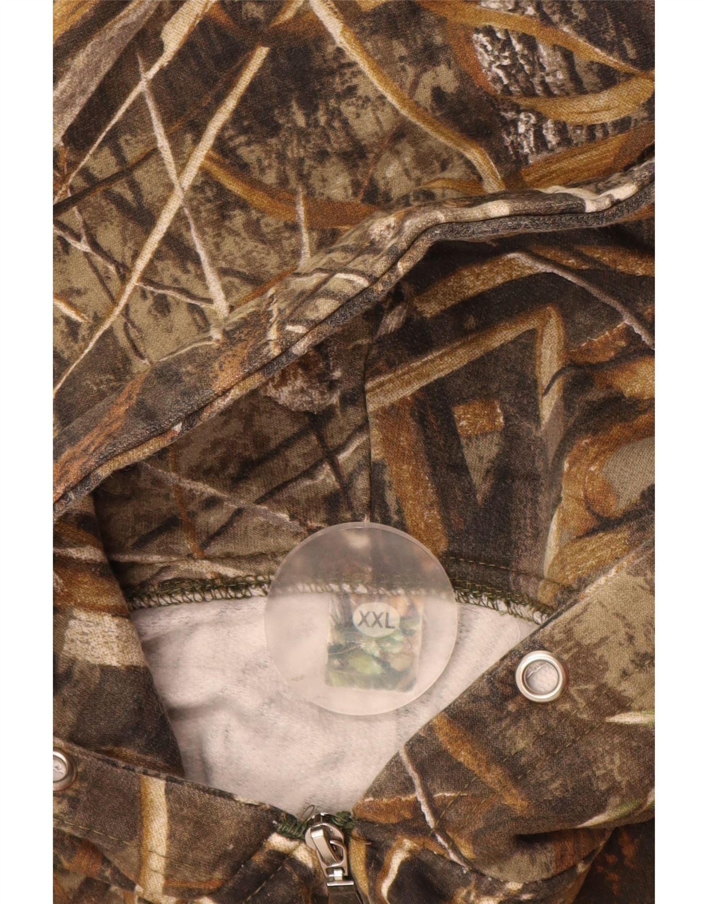 VINTAGE Mens Zip Hoodie Sweater 2XL Brown Camouflage Polyester