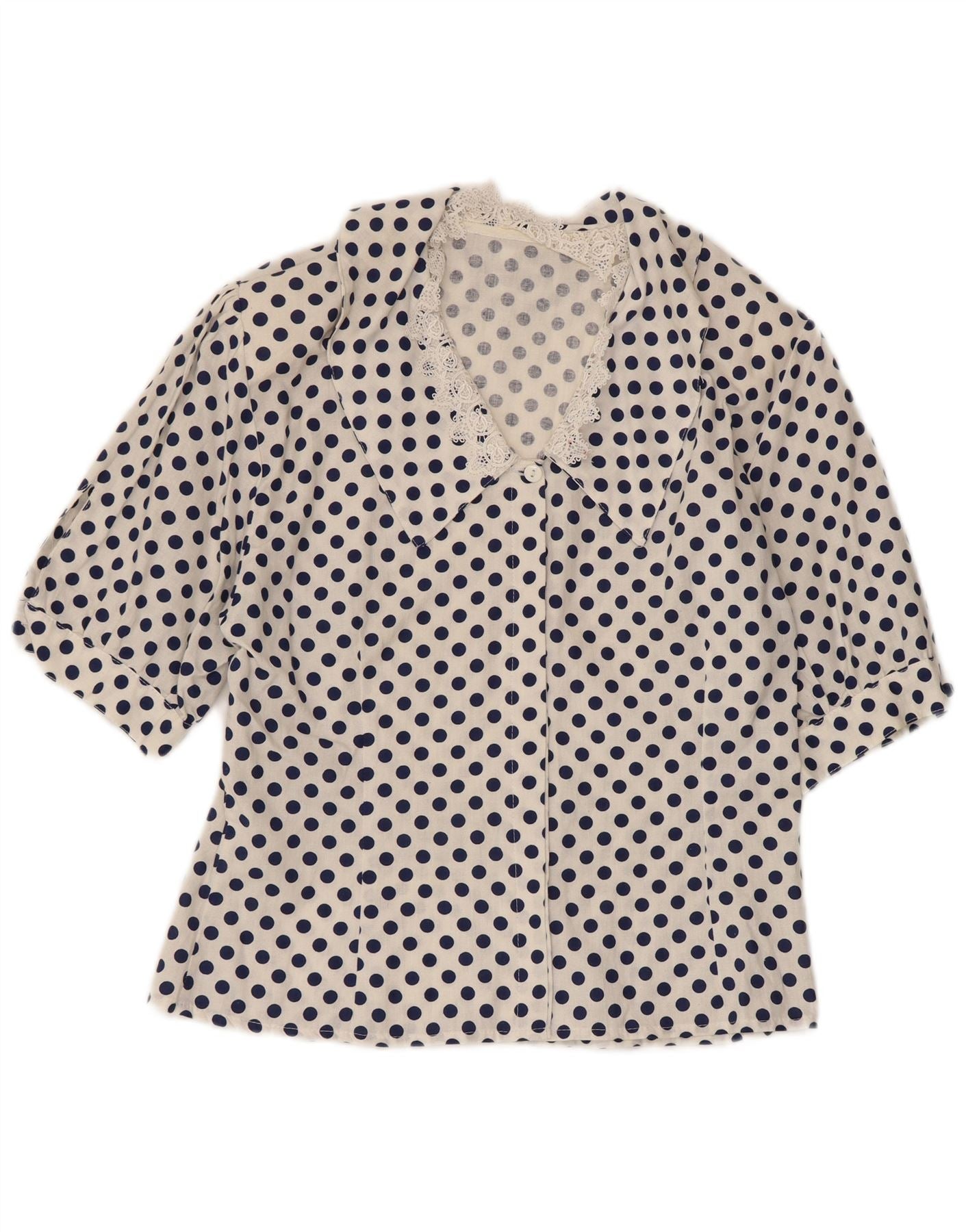 VINTAGE Womens 1/2 Sleeve Shirt Blouse UK 12 Medium White Polka Dot