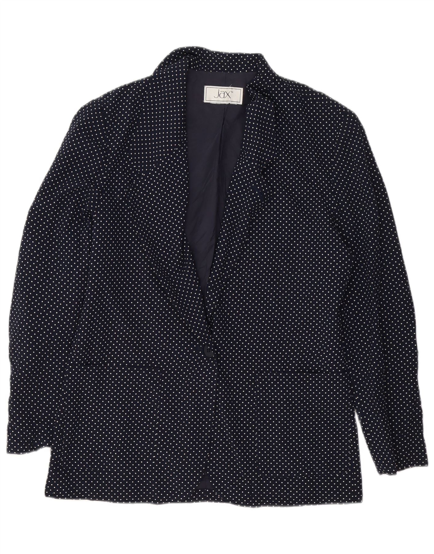 VINTAGE Womens 1 Button Blazer Jacket UK 14 Medium Navy Blue Spotted