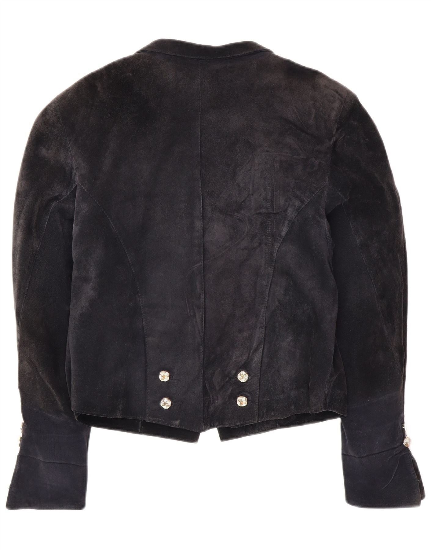 VINTAGE Womens 1 Button Crop Blazer Jacket UK 14 Medium Navy Blue Viscose