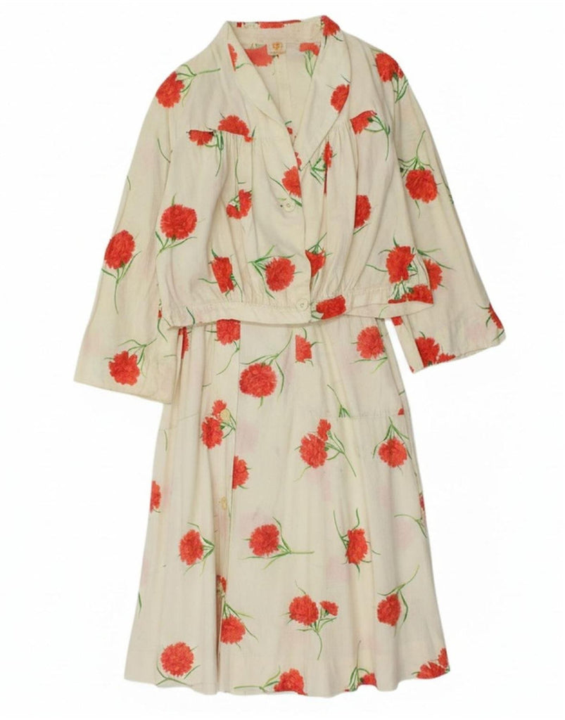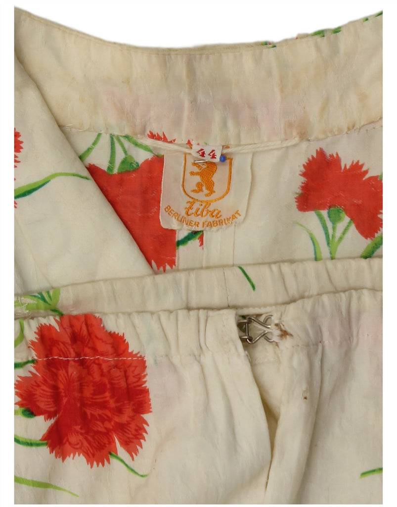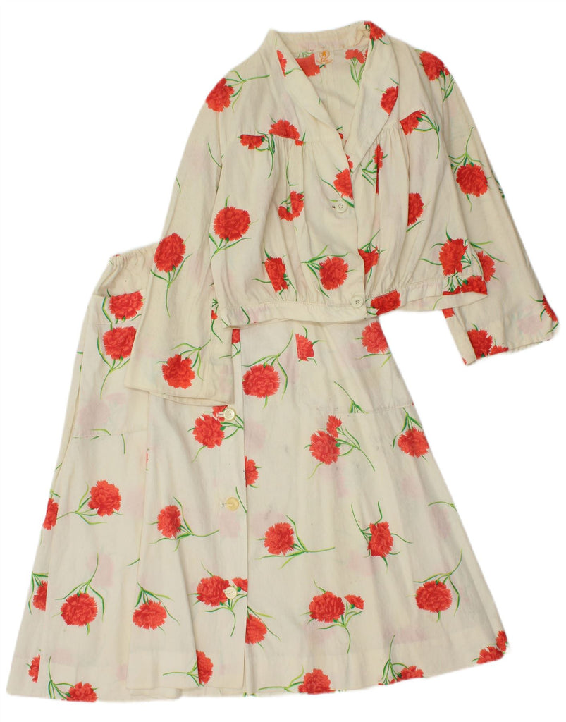 VINTAGE Womens 2 Button 2 Piece Skirt Set IT 44 Medium W30 White Floral