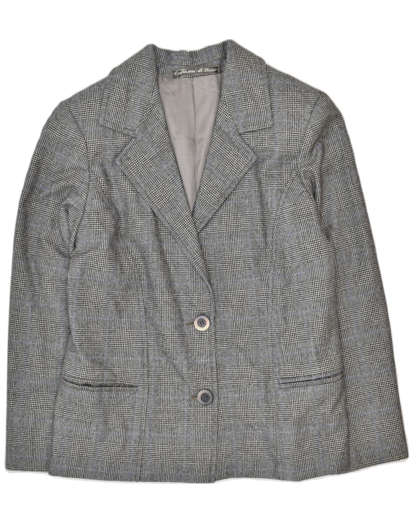 VINTAGE Womens 2 Button Blazer Jacket UK 14 Medium Grey Check