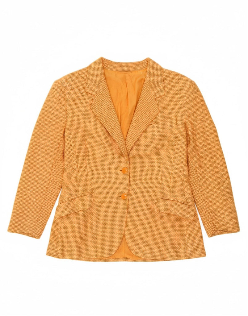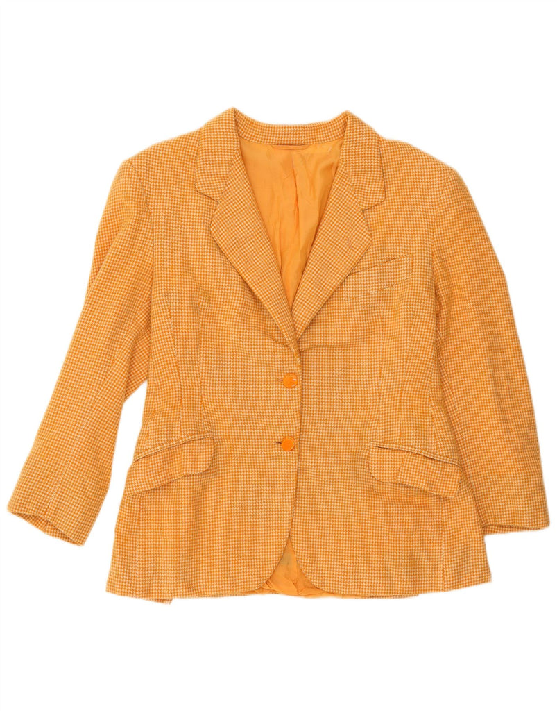 VINTAGE Womens 2 Button Blazer Jacket UK 14 Medium Yellow Houndstooth