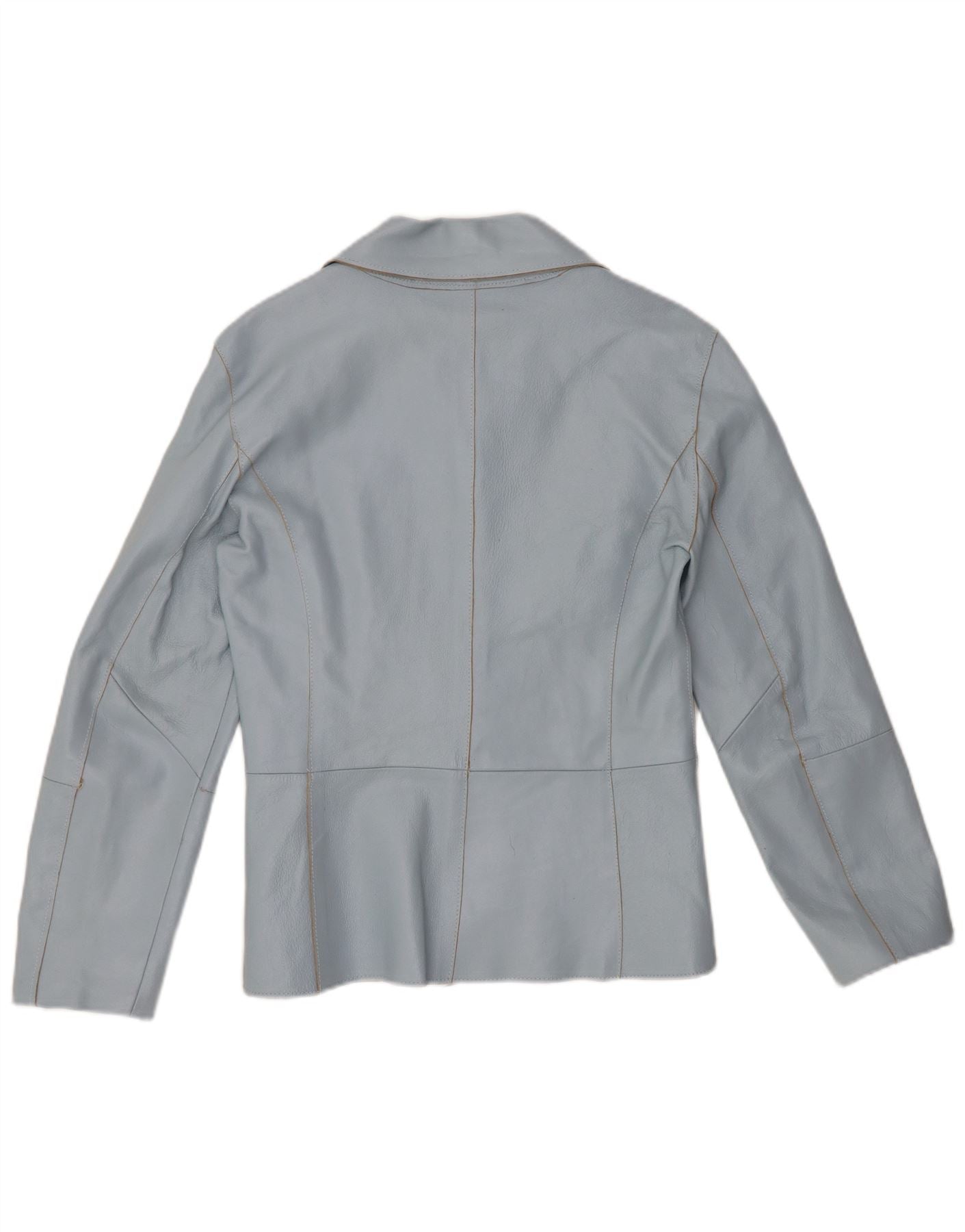 VINTAGE Womens 2 Button Leather Blazer Jacket UK 12 Medium Blue