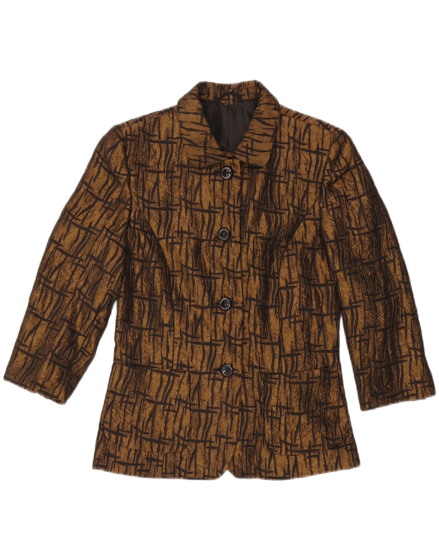 VINTAGE Womens 3/4 Sleeve Blazer Jacket UK 10 Small Brown Geometric