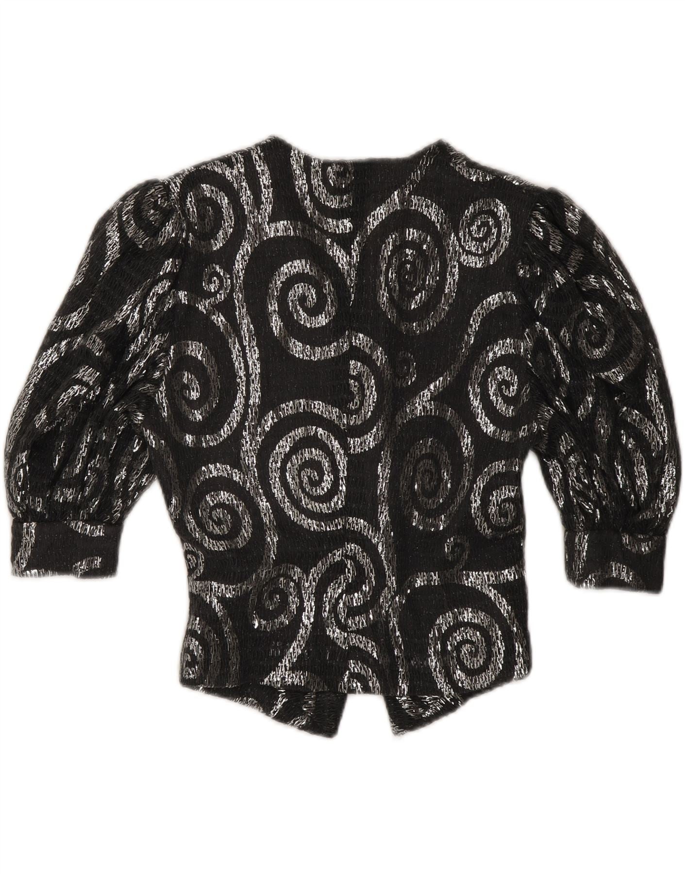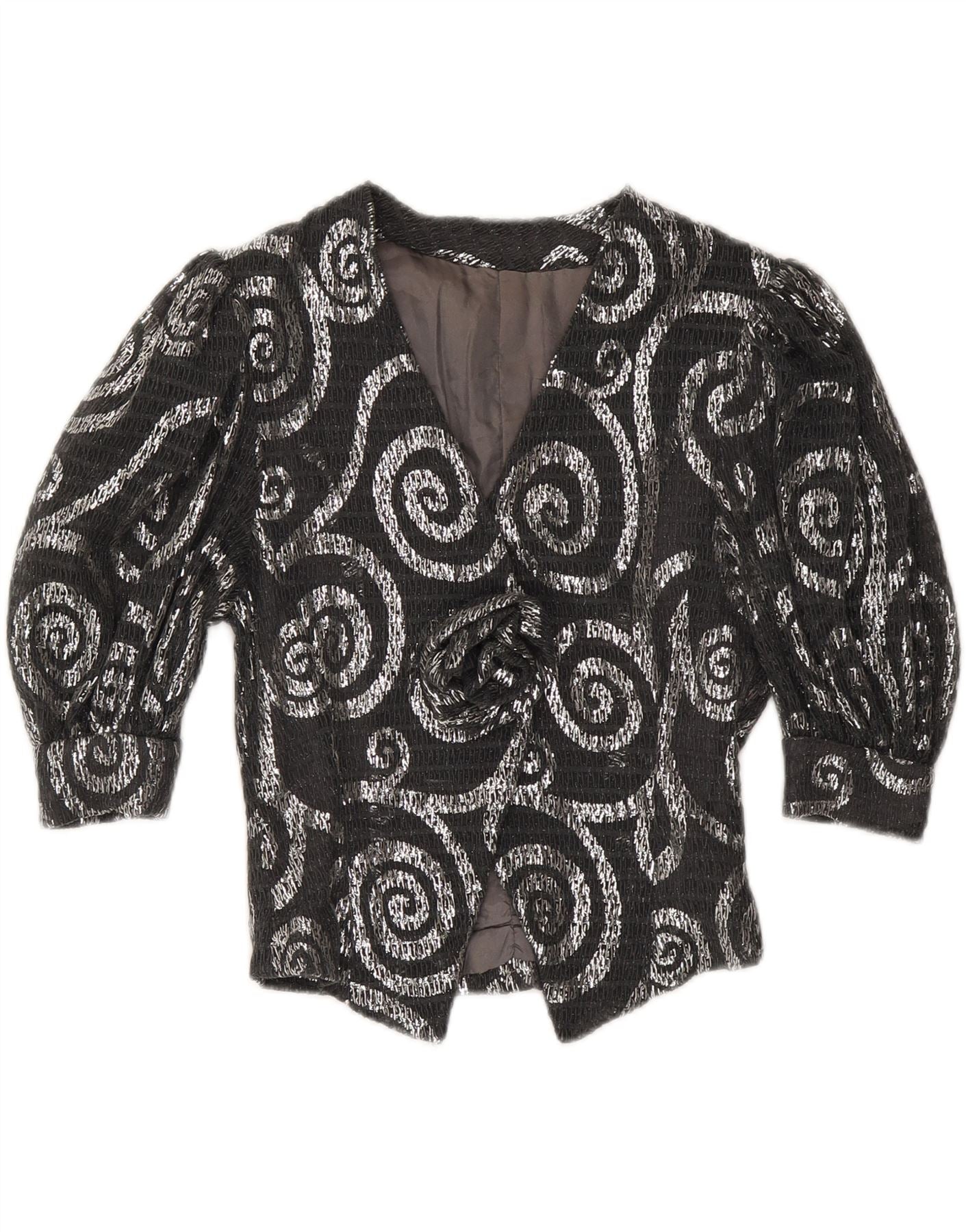 VINTAGE Womens 3/4 Sleeve Blazer Jacket UK 12 Medium Grey Paisley