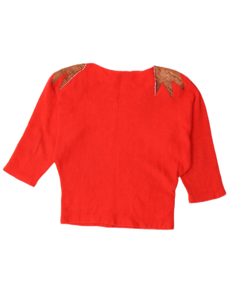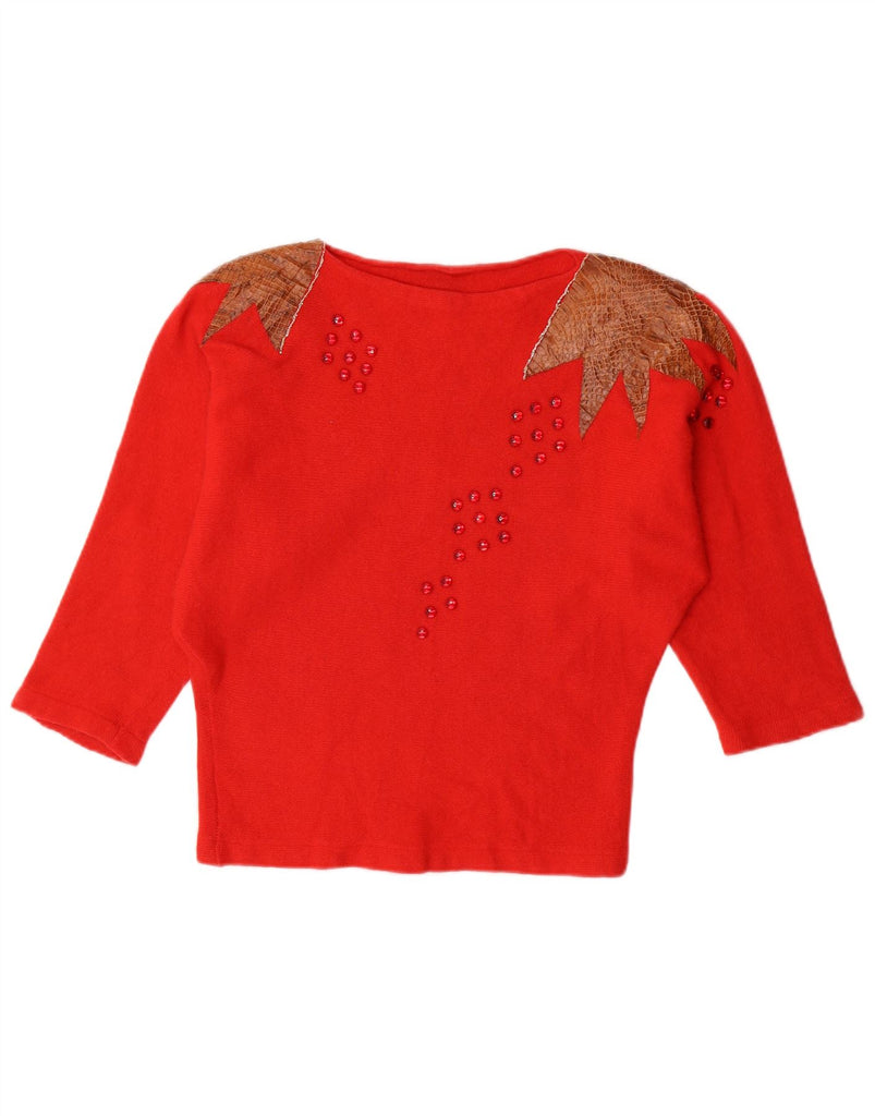 VINTAGE Womens 3/4 Sleeve Boat Neck Jumper Sweater UK 14 Medium Red