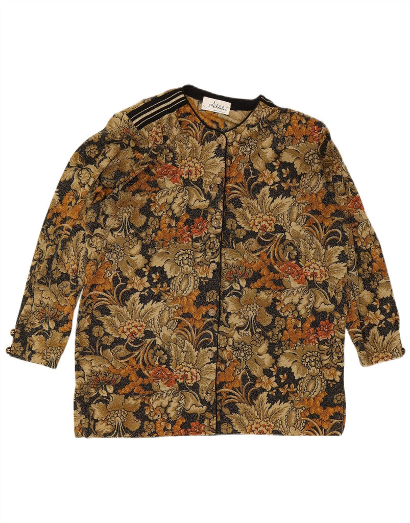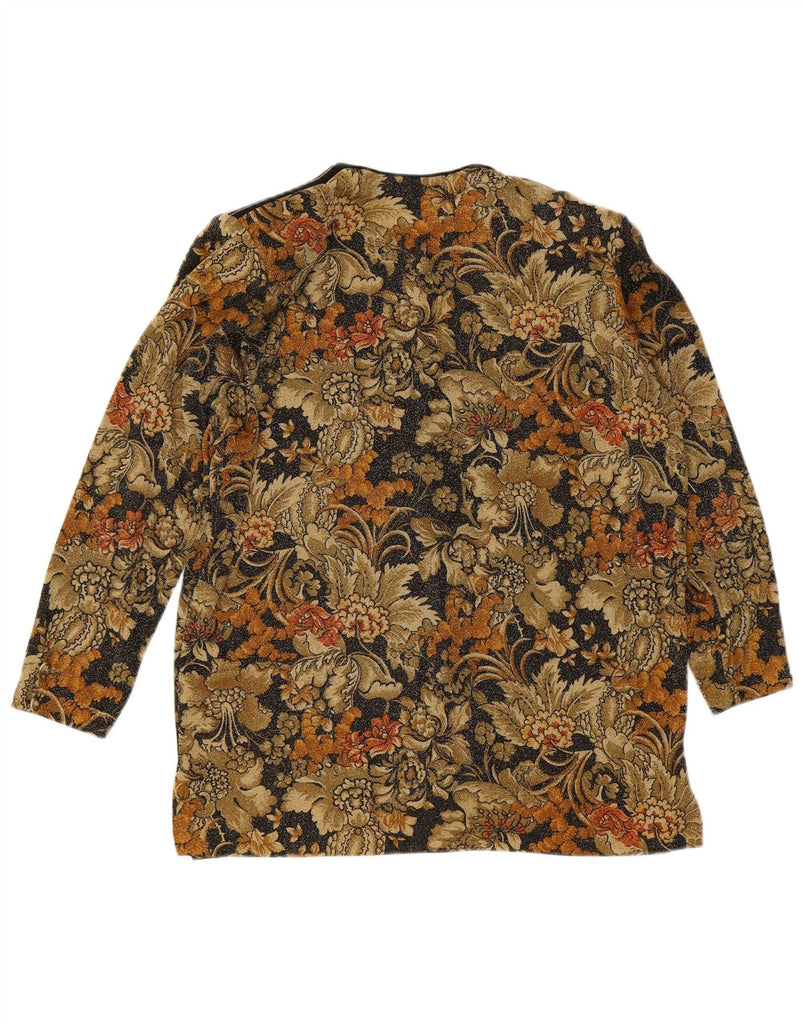 VINTAGE Womens 3/4 Sleeve Cardigan Top IT 52 2XL Gold Floral Acetate
