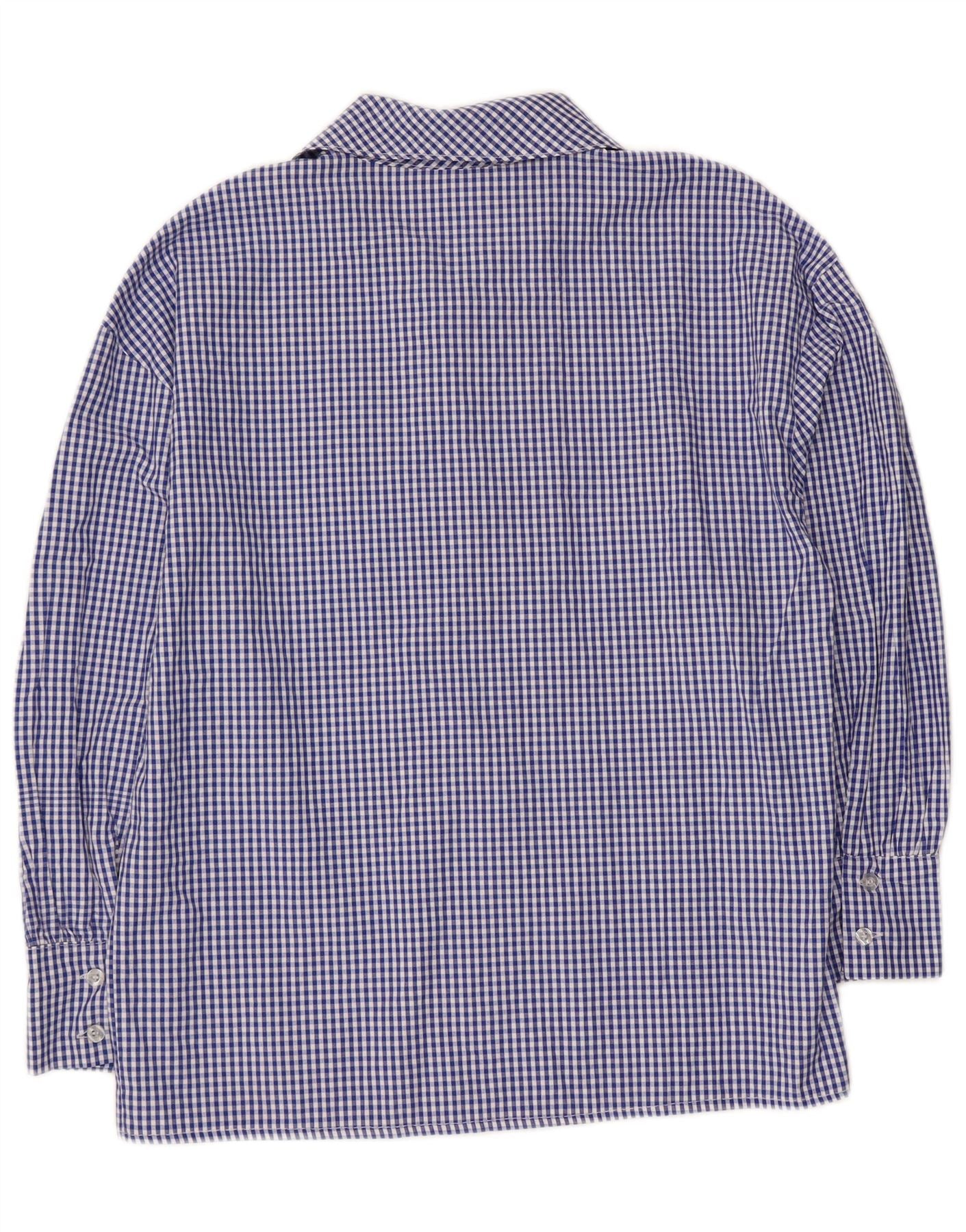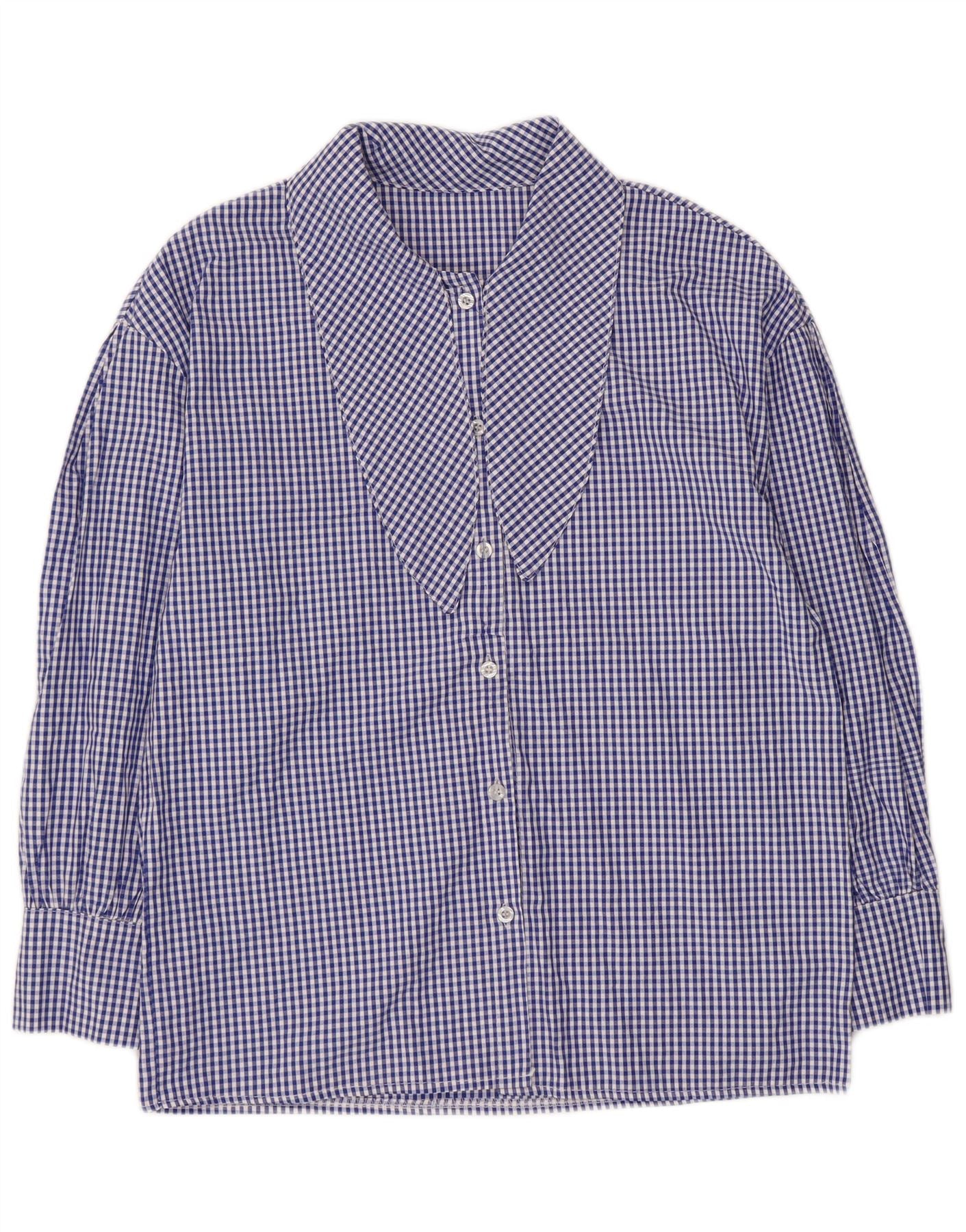 Vintage Womens 3/4 Sleeve Front Tie Shirt Blouse UK 14 Medium Blue Gingham