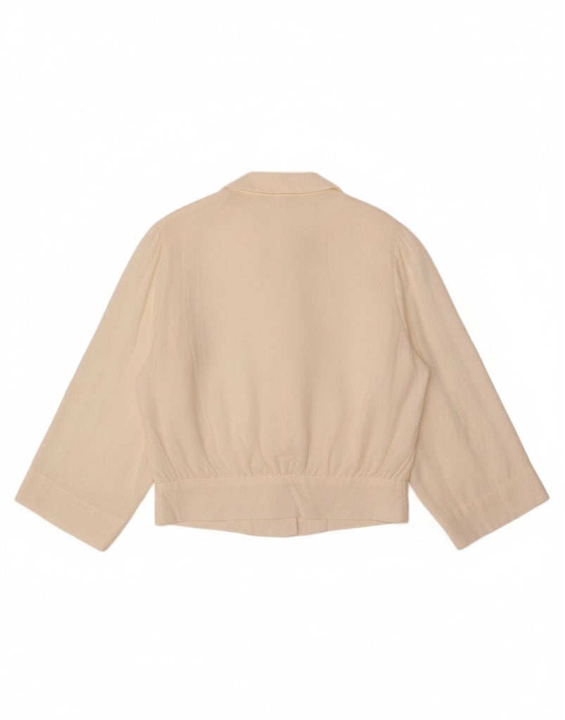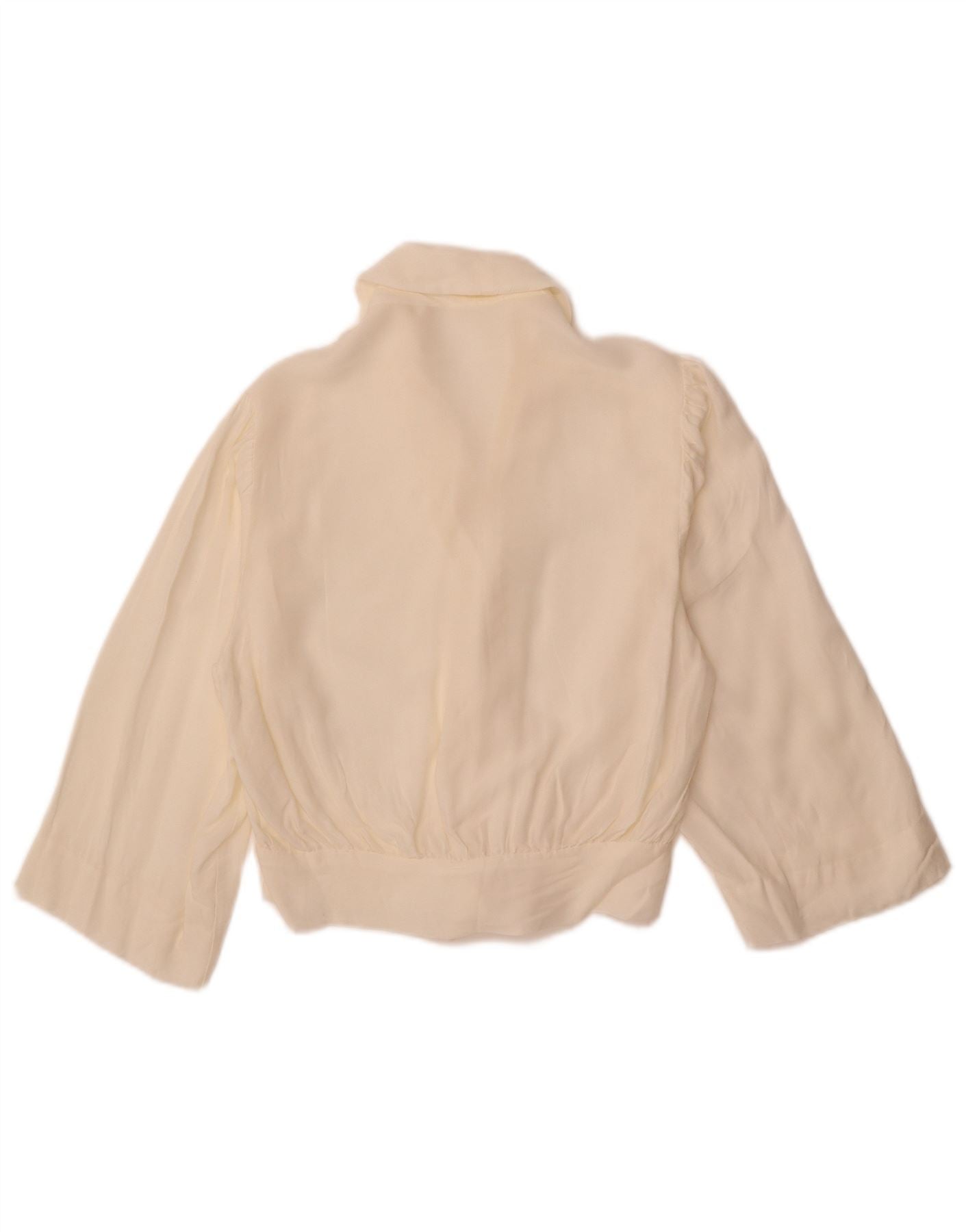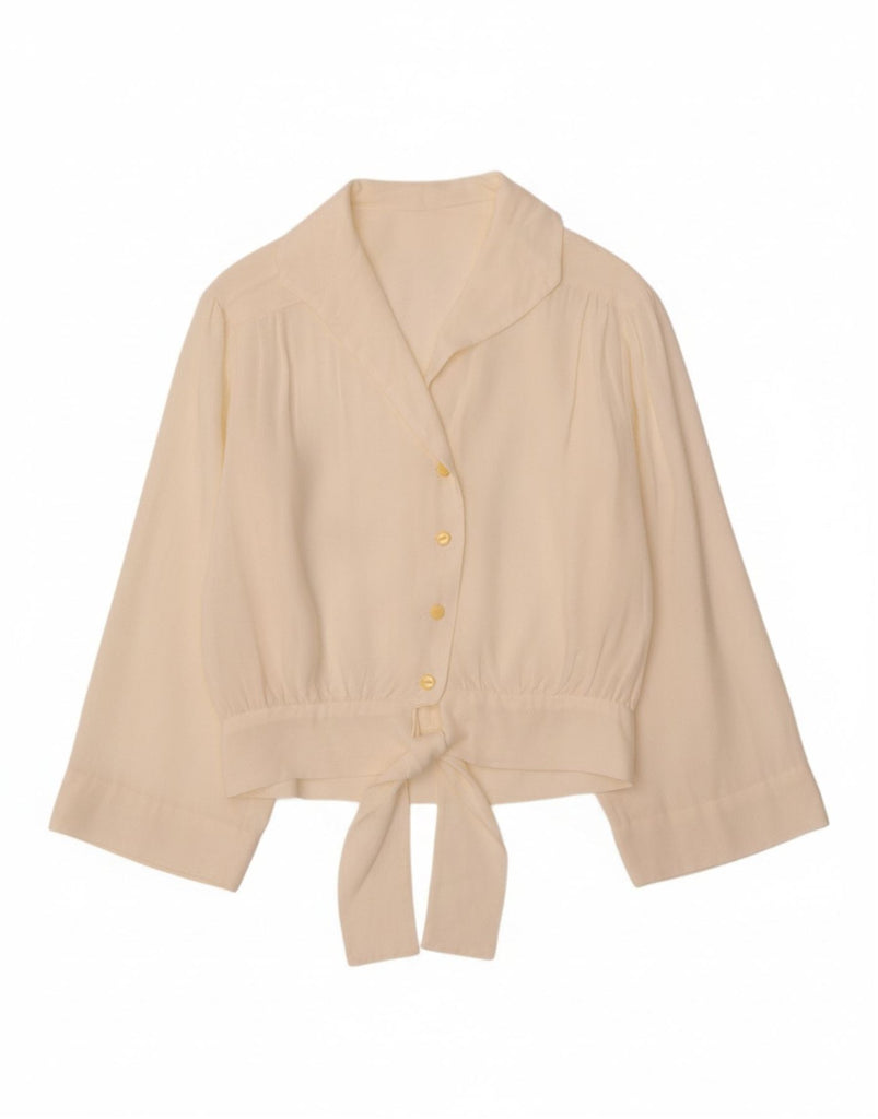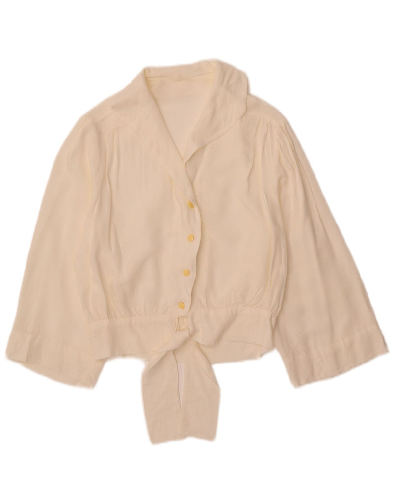 VINTAGE Womens 3/4 Sleeve Front Tie Shirt Blouse UK 14 Medium Off White