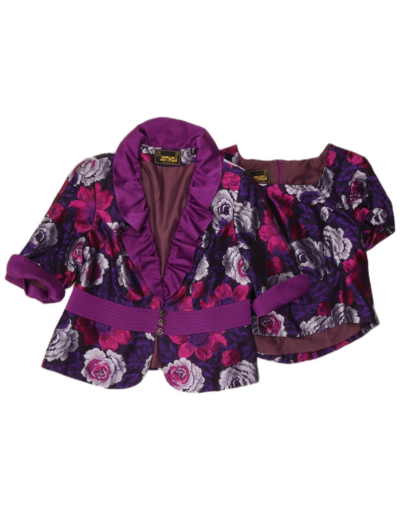 VINTAGE Womens 3 Button 2 Piece Set IT 44 Medium Purple Floral Polyester
