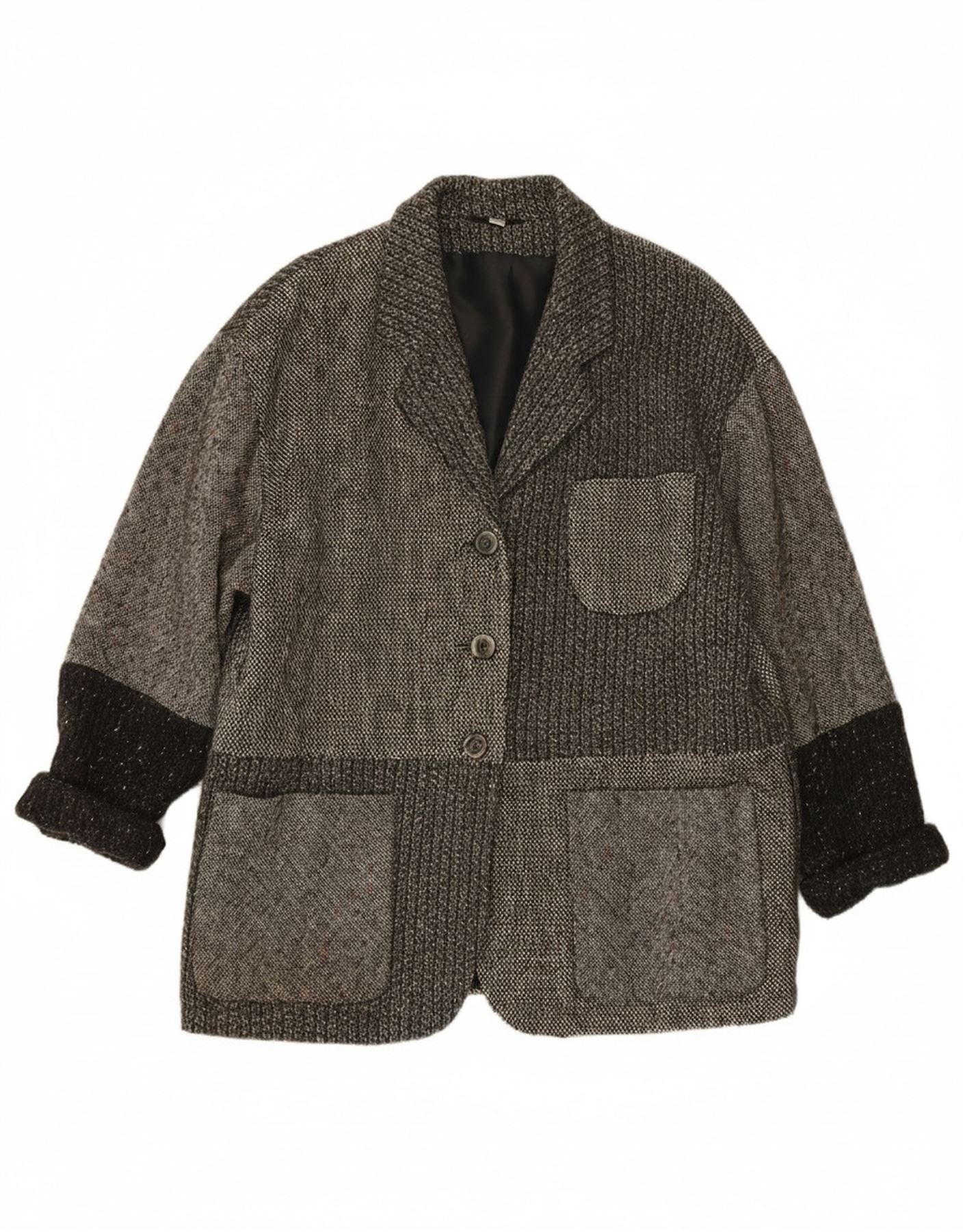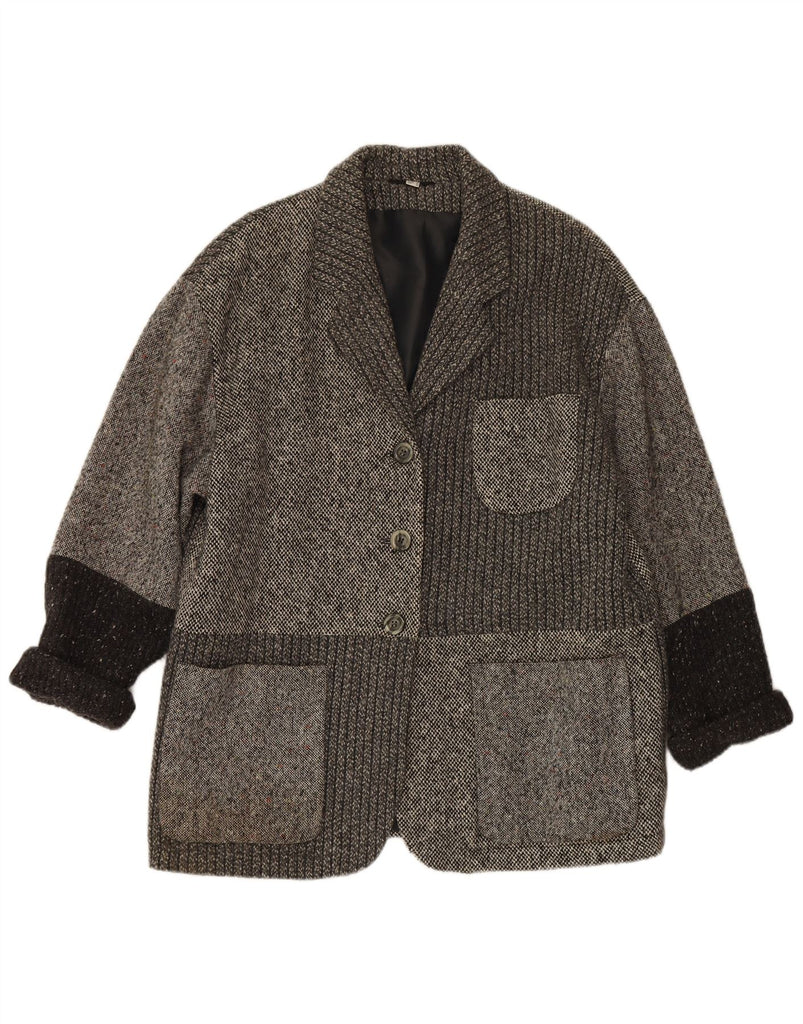VINTAGE Womens 3 Button Blazer Jacket EU 42 Large Grey Flecked Wool