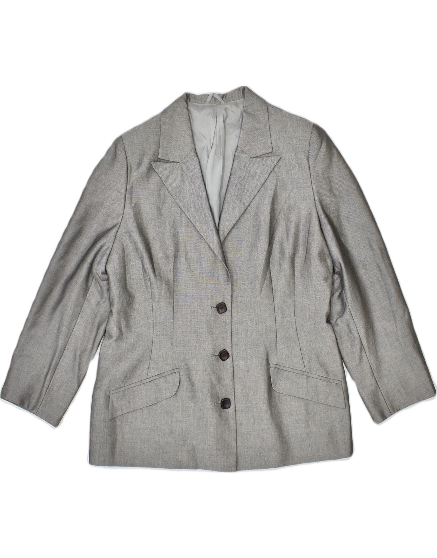 VINTAGE Womens 3 Button Blazer Jacket UK 12 Medium Grey