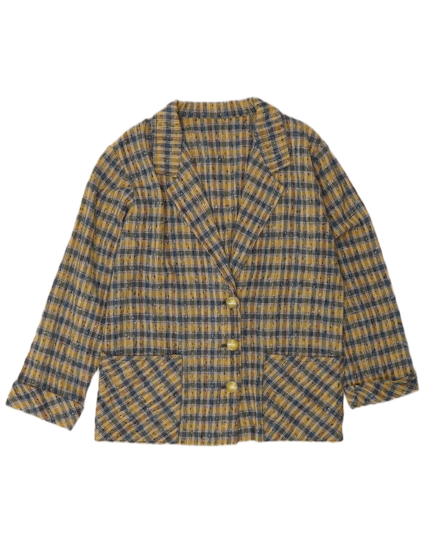 VINTAGE Womens 3 Button Blazer Jacket UK 14 Medium Yellow Check