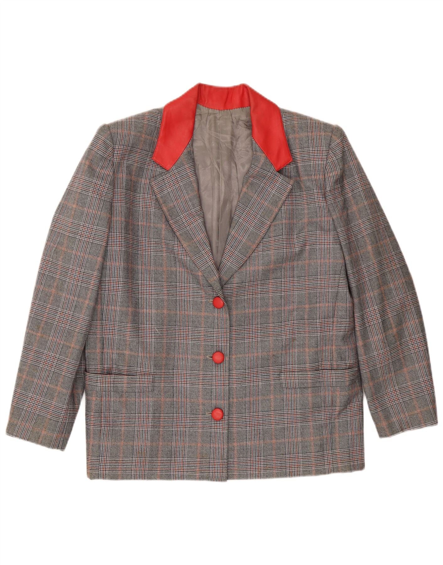 VINTAGE Womens 3 Button Blazer Jacket UK 16 Large Grey Check